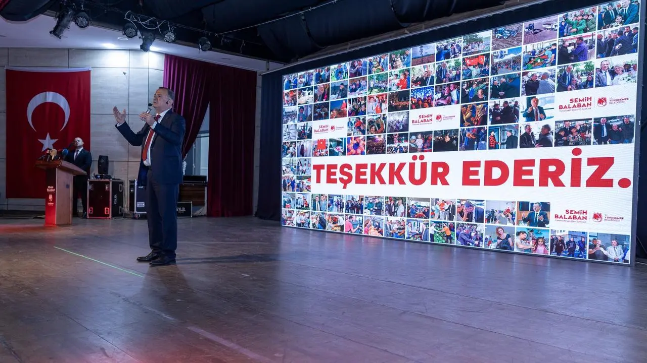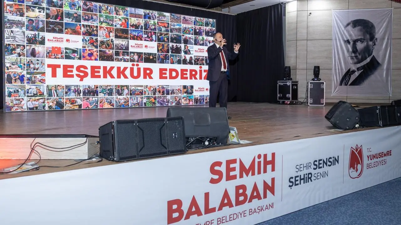 Yunusemre Belediye Başkanı Semih Balaban, 14 aylık görev süresince yapılan çalışmaları düzenlenen 1. Yıl Buluşması'nda anlattı.