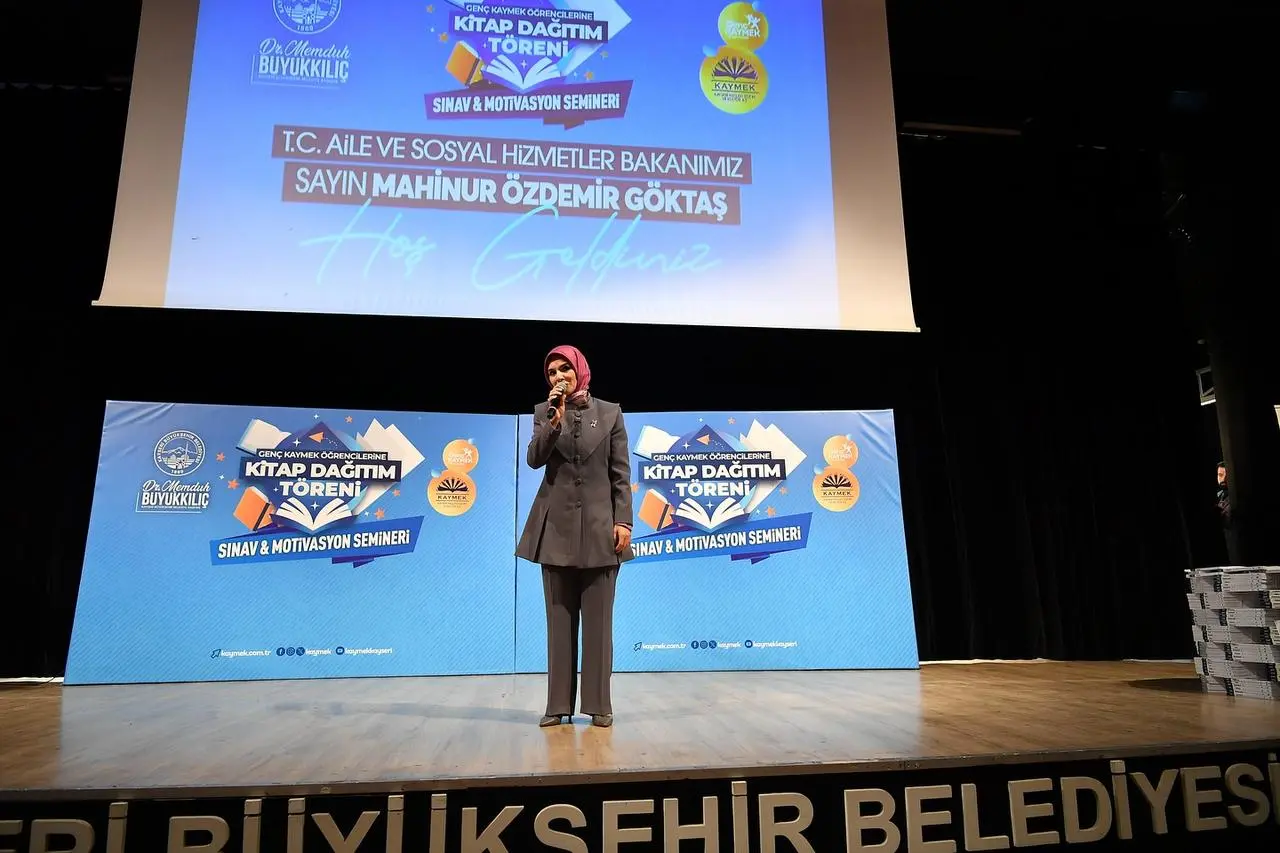 Kayseri Büyükşehir Belediye Başkanı Dr. Memduh Büyükkılıç ve Aile ve Sosyal Hizmetler Bakanı Mahinur Özdemir Göktaş, öğrencilere kitap dağıtım töreninde bulundu. Etkinlikte LGS ve YKS hazırlık kitapları ücretsiz olarak dağıtıldı.