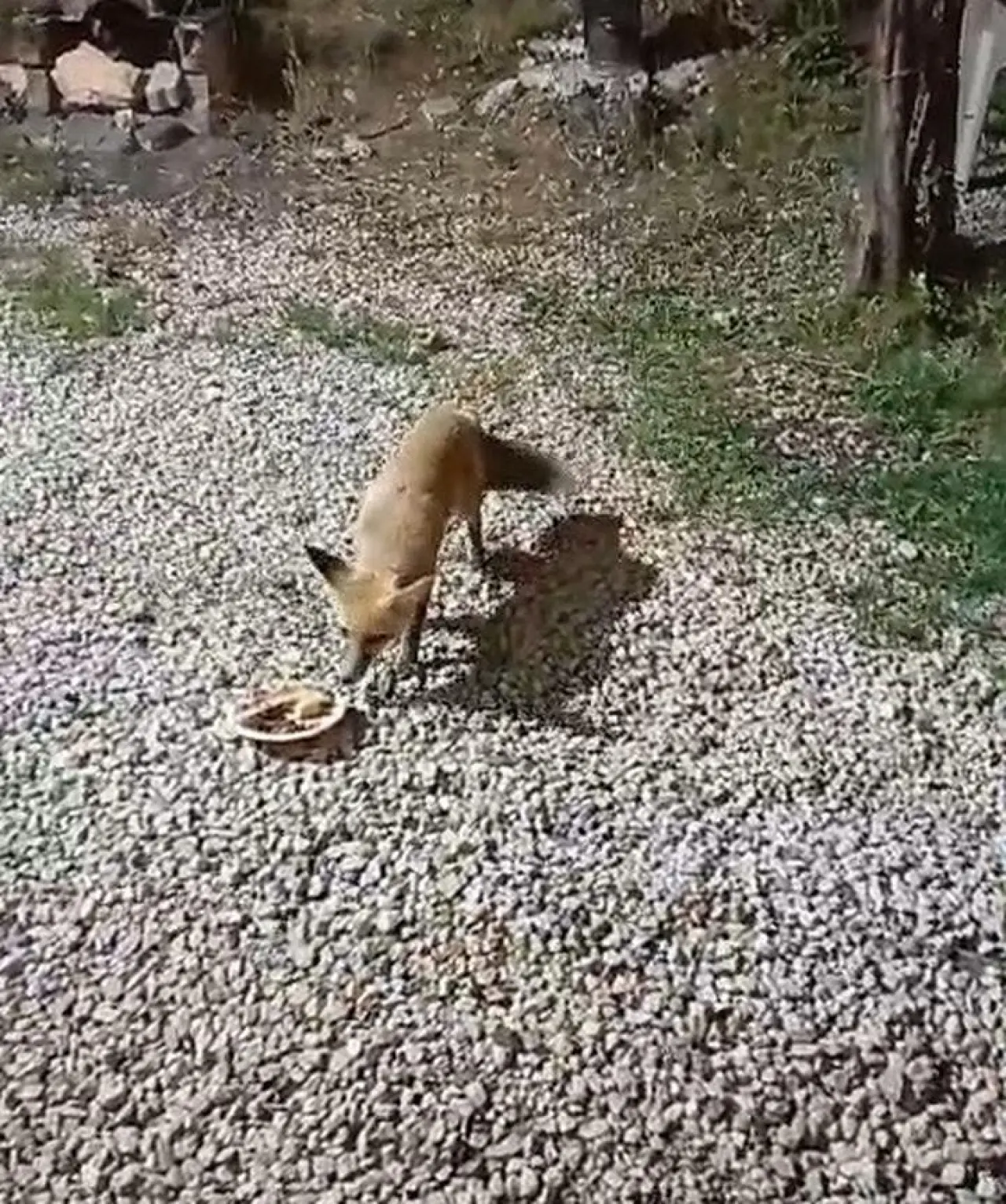 Karnını doyurduktan sonra tesis çevresinde vakit geçiren tilki, daha sonra doğaya geri dönüyor. Bu rutin, her akşam tekrar ediyor.