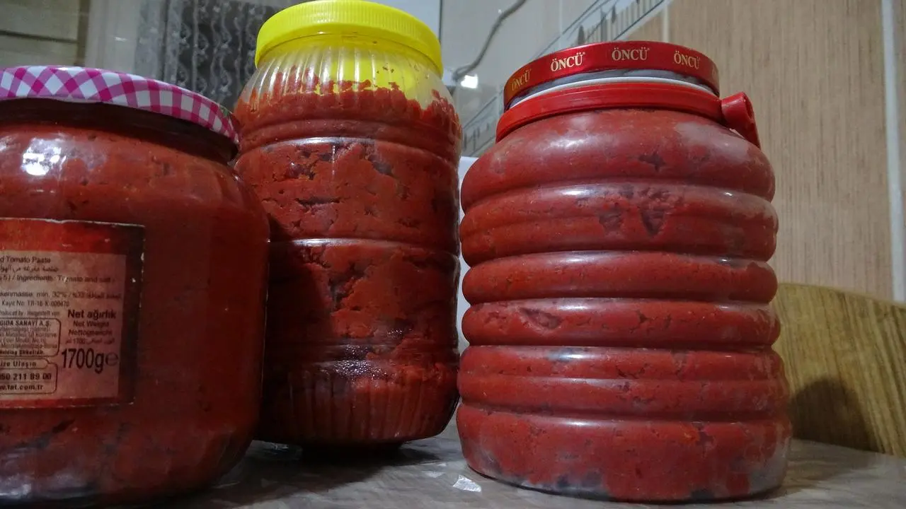 Kışlık salçalar, bozulmaması için tuz eklenerek serin yerlerde saklanıyor.