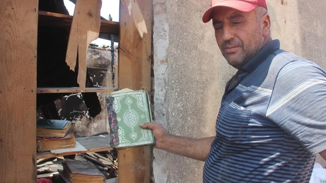 Çanakkale'nin Bayramiç ilçesinde çıkan orman yangınında evi küle dönen Ali Aydoğan'ın Kur'an-ı Kerim'leri sapasağlam kaldı.