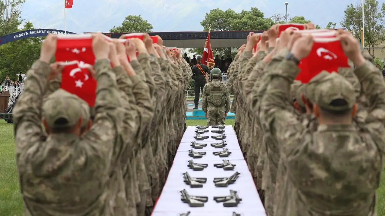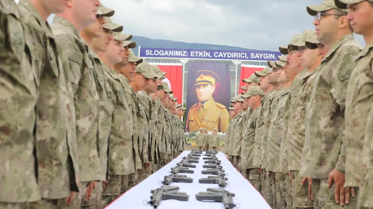 General Enver Eralp Kışlasında tören düzenlendi. Askerler, Türk bayrağı ve silah üzerine el basarak yemin etti.