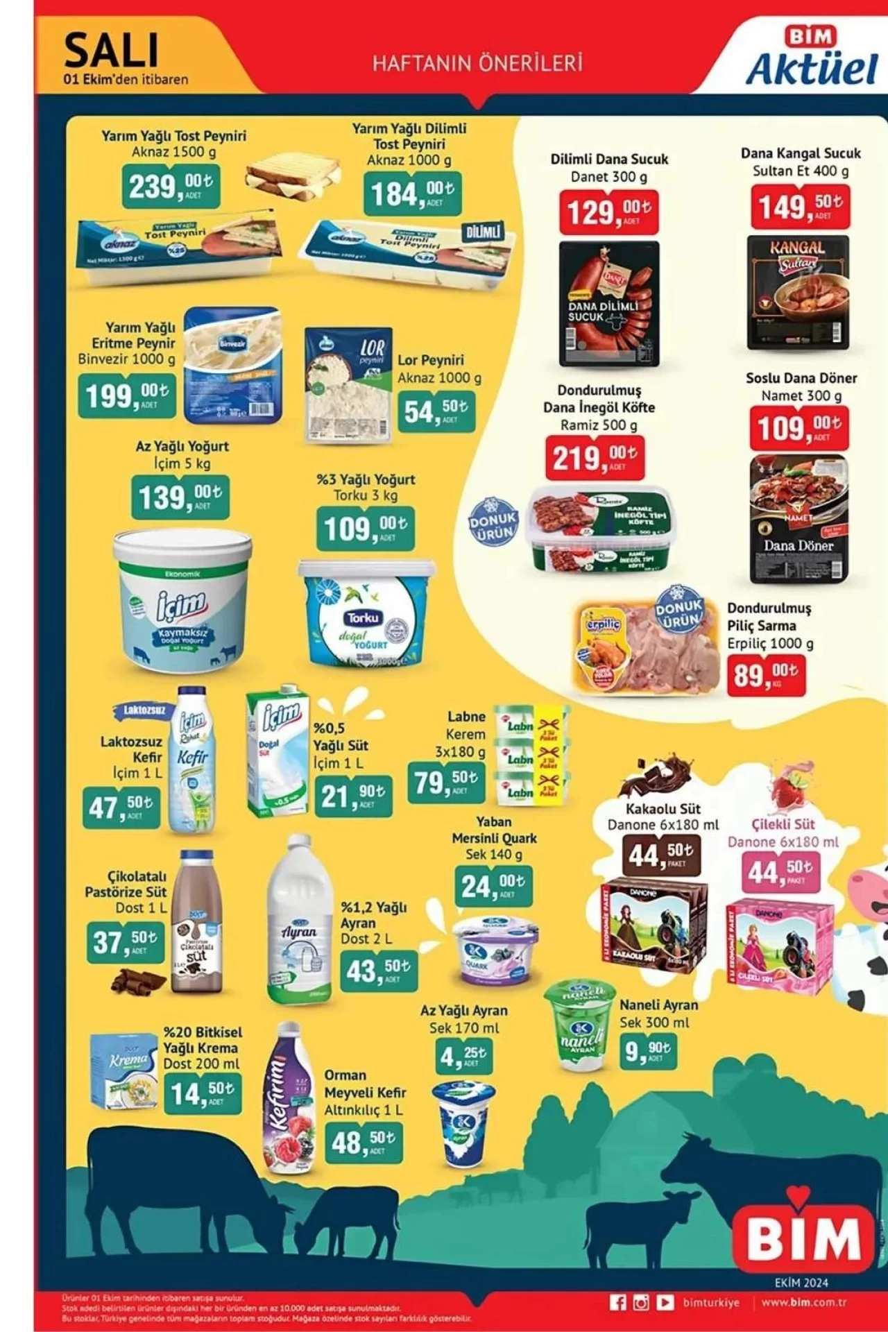 1 Ekim 2024 Bim Aktüel kataloglarında yer alan indirimli ürünlerle bütçenizi koruyabilirsiniz. Bim, kahvaltılık ürünler, süt ve şarküteri ürünleri gibi temel gıda ürünlerinde önemli indirimler sunuyor. Az yağlı içim yoğurt yalnızca 139,00 TL, 3’lü Kerem Labne Peynir ise sadece 79,50 TL’dir. İndirime giren ürünler arasında tost peyniri, eritme peynir, lor peyniri, yoğurt çeşitleri, kefir, süt, ayran, labne, krema ve meyveli kefir bulunuyor. Ayrıca kakaolu süt, çilekli süt, dondurulmuş piliç sarma gibi ürünlerde de kampanyalar mevcut. Dana sucuk, kangal sucuk, inegöl köfte ve dana döner gibi et ürünleri de raflarda yerini alacak.