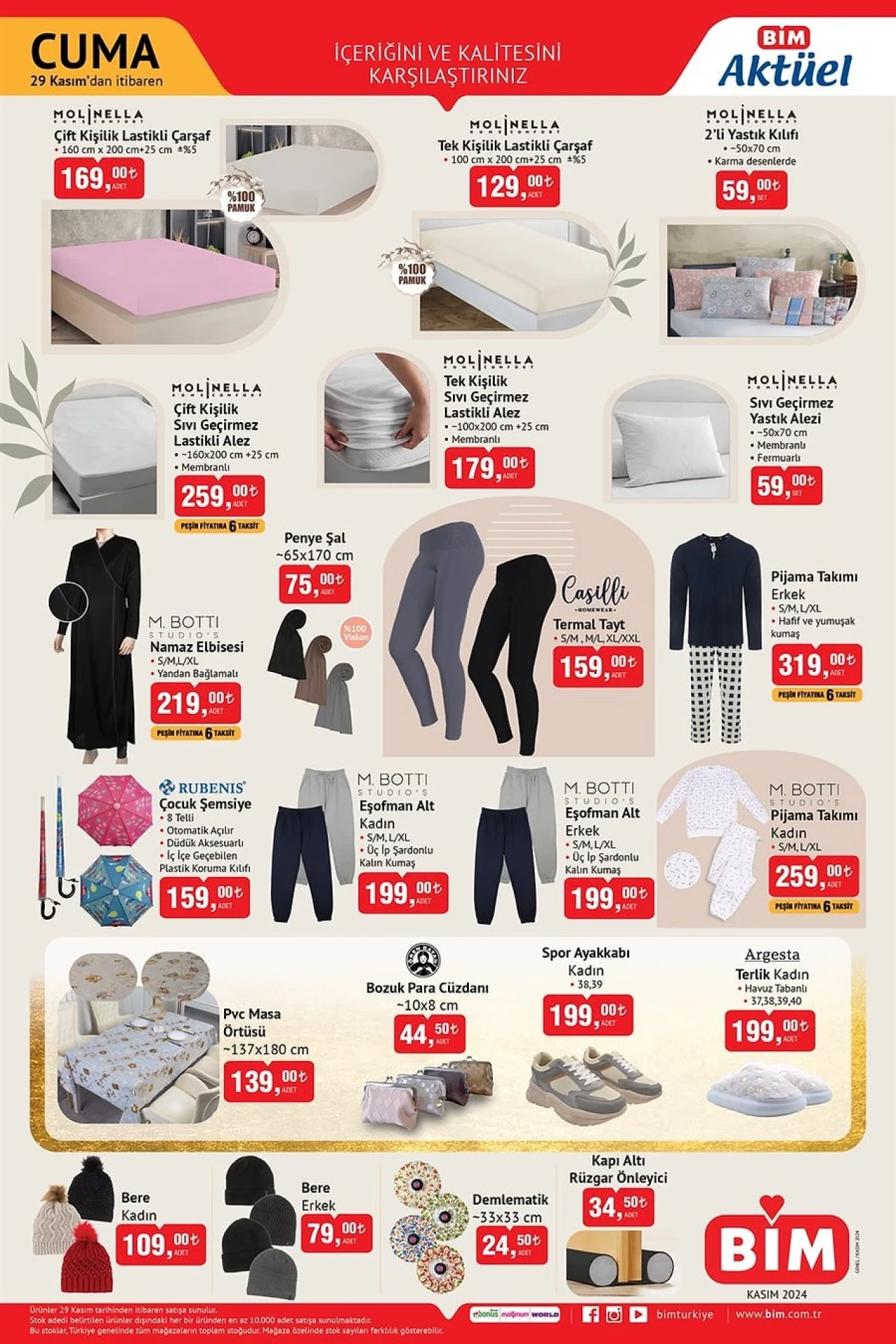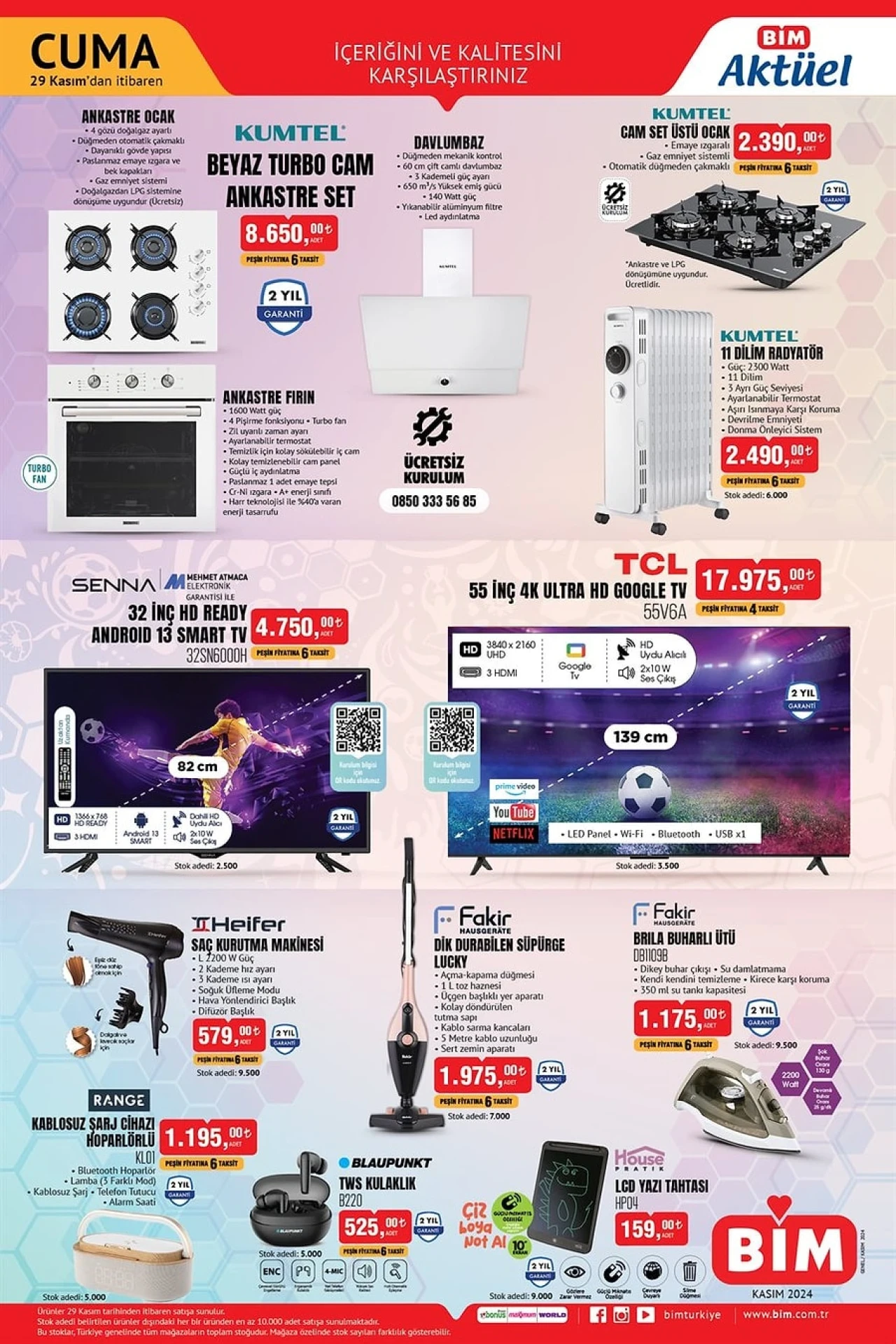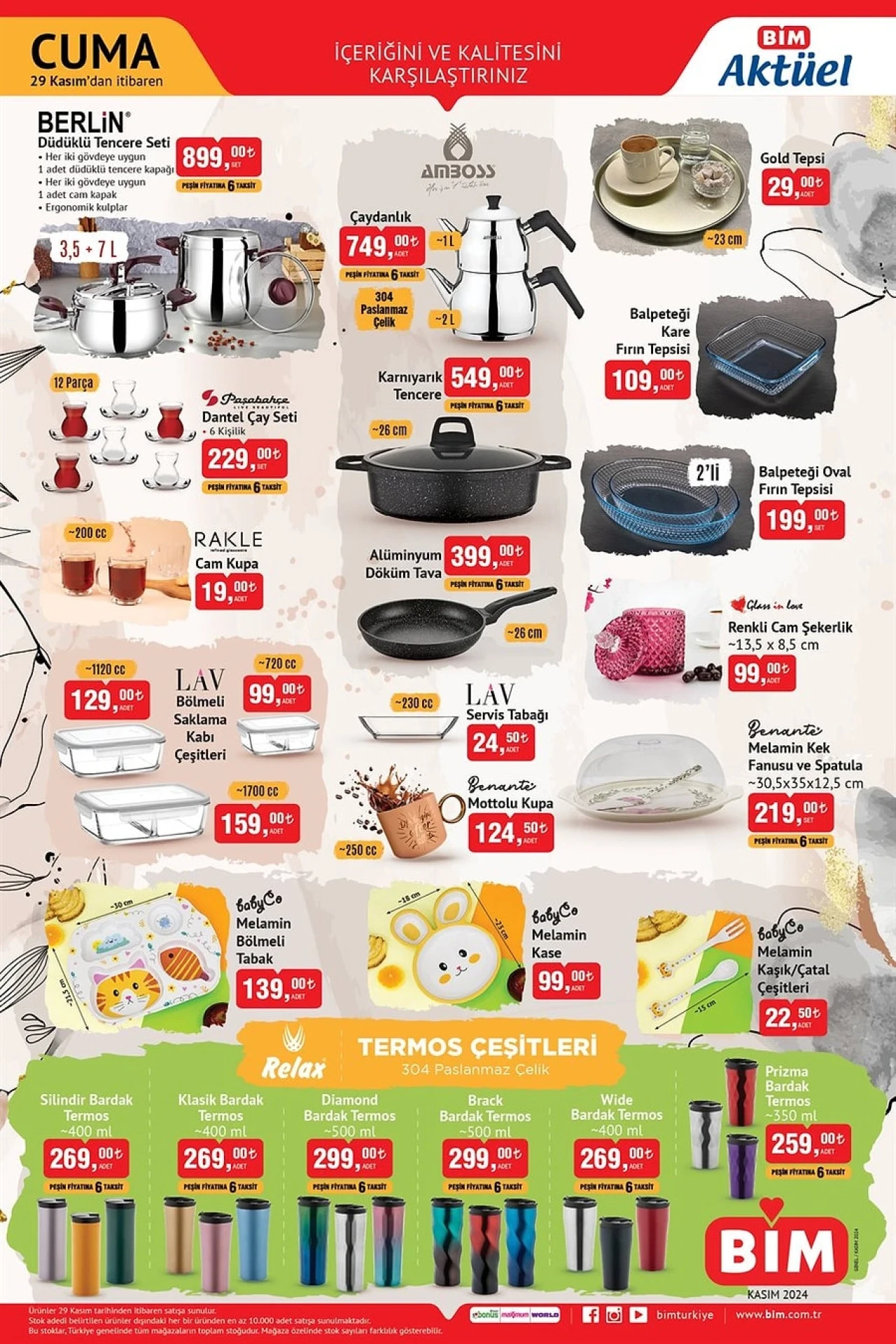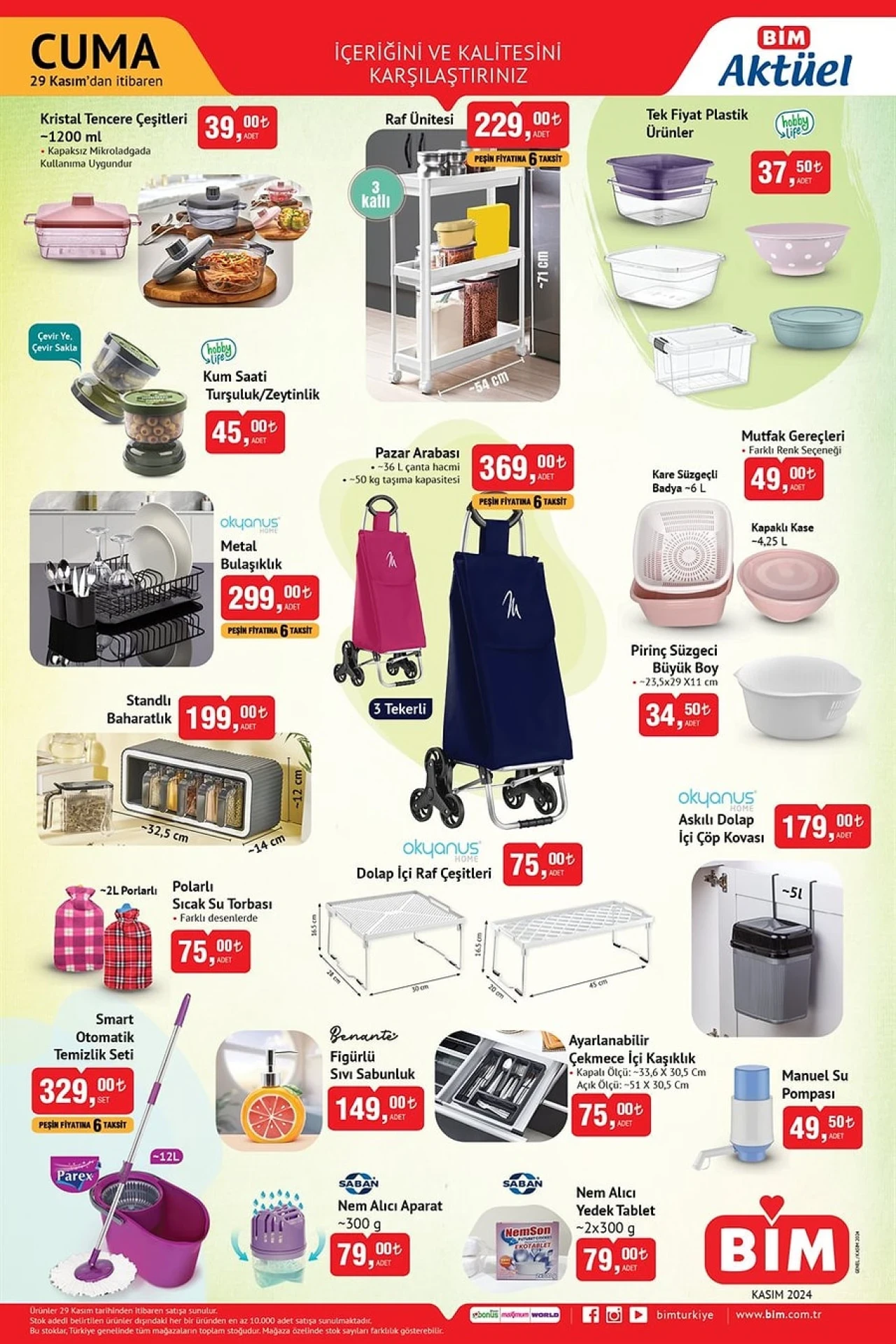 BİM, bu hafta da birbirinden uygun fiyatlı ve kaliteli ürünleri müşterilerinin beğenisine sunuyor. 29 Kasım 2024 tarihi itibarıyla mağazalarda yer alacak ürünler sınırlı stoklarla satışa sunulacak. İhtiyaçlarınıza uygun ürünleri kaçırmamak için mağazaları ziyaret etmeyi unutmayın.