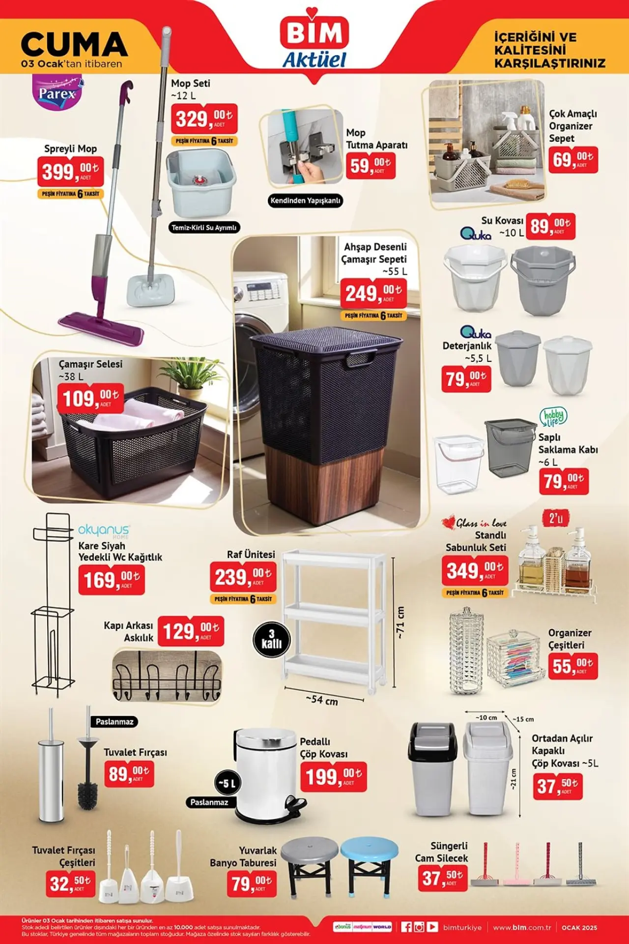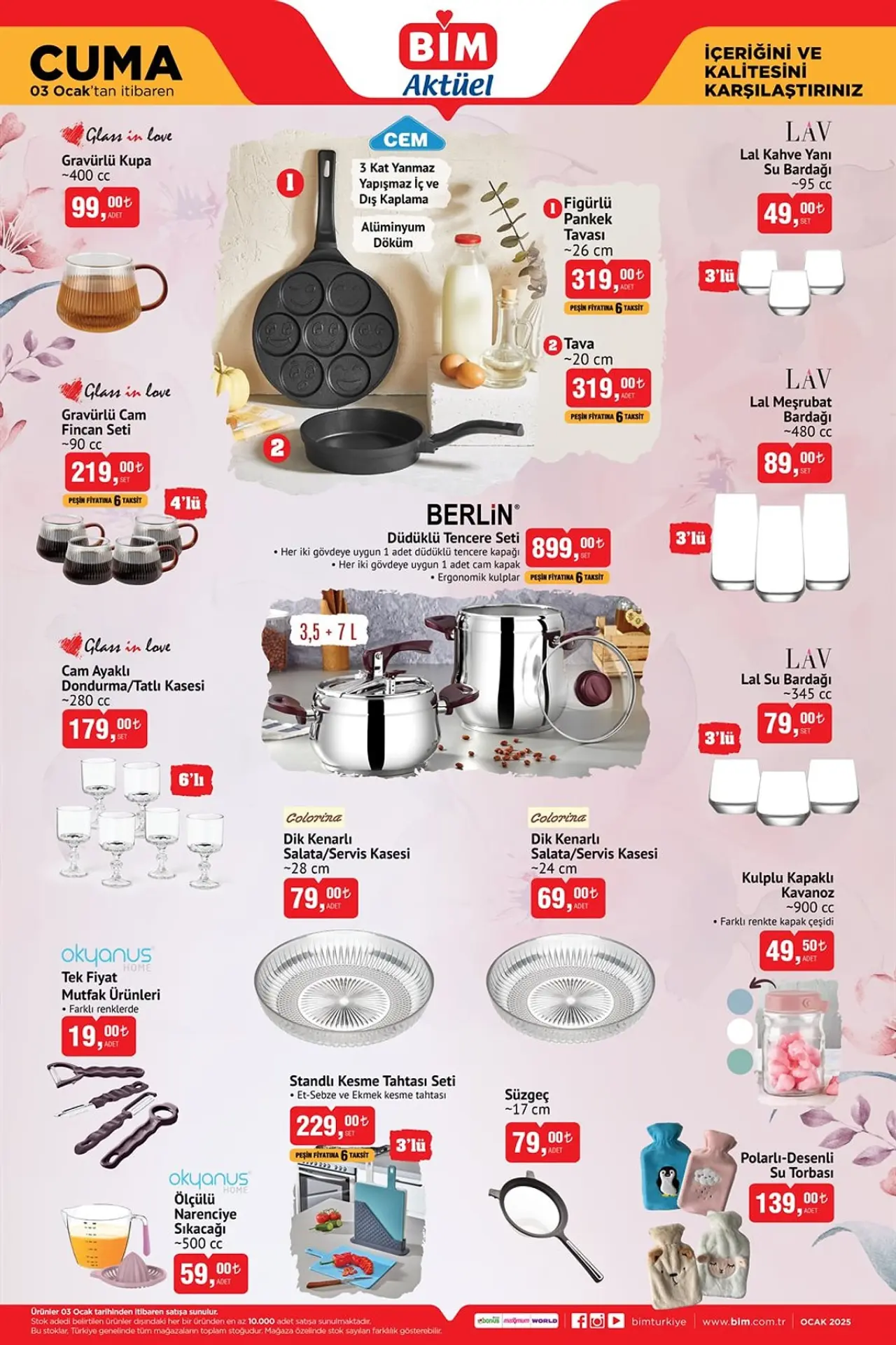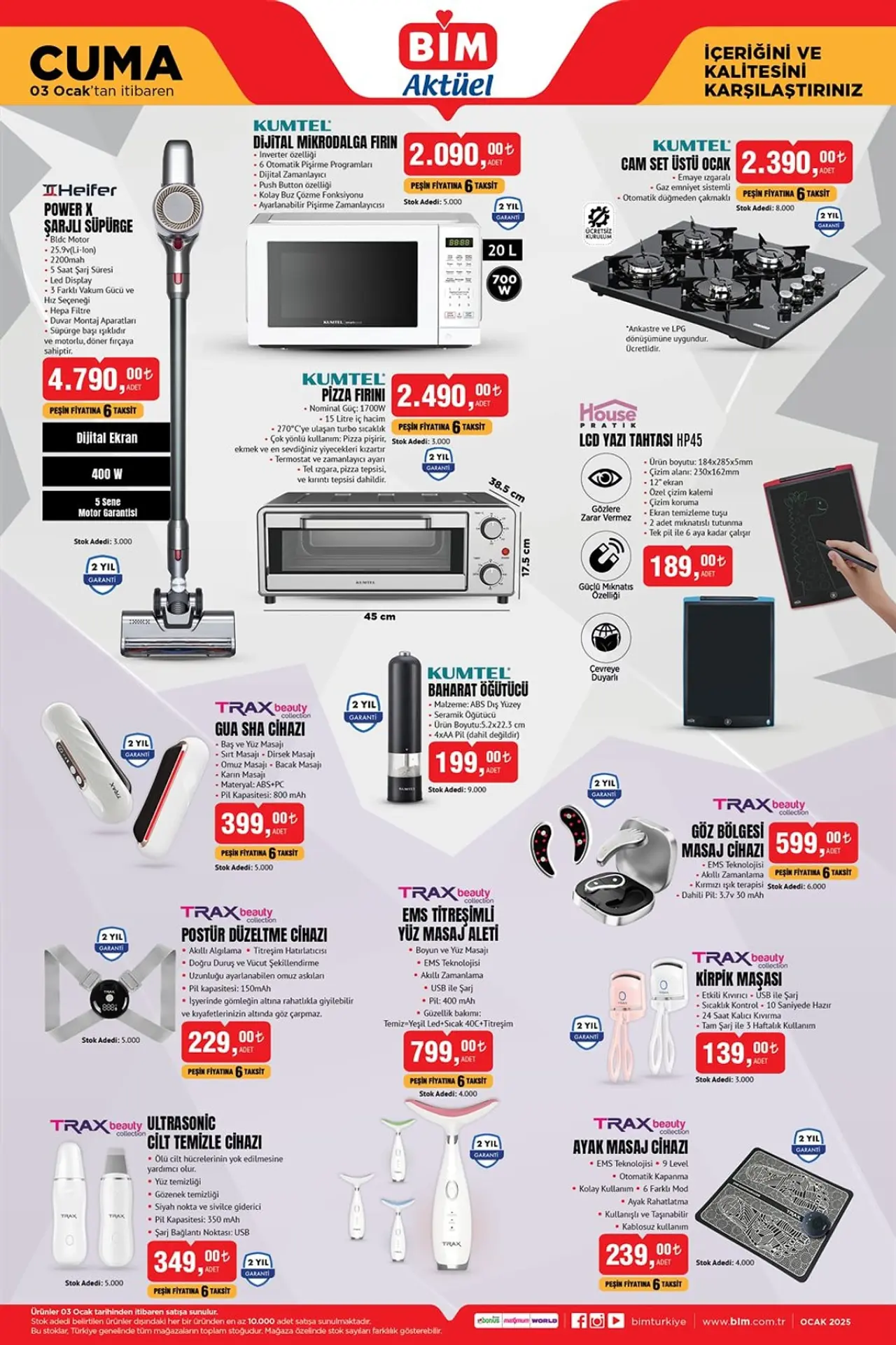 3 Ocak 2025'te BİM'de satışa sunulacak olan bu ürünler, cazip fiyatlarla evinizdeki eksikleri tamamlamanızı sağlayacak. Elektronik cihazlardan ev tekstiline kadar birçok kategorideki ürünler büyük indirimlerle satışa sunuluyor. Bu fırsatları kaçırmamak için kataloğu dikkatlice inceleyin ve BİM mağazalarına uğrayarak indirimli ürünlerden faydalanın. Unutmayın, fırsatlar sınırlı süreyle geçerli!