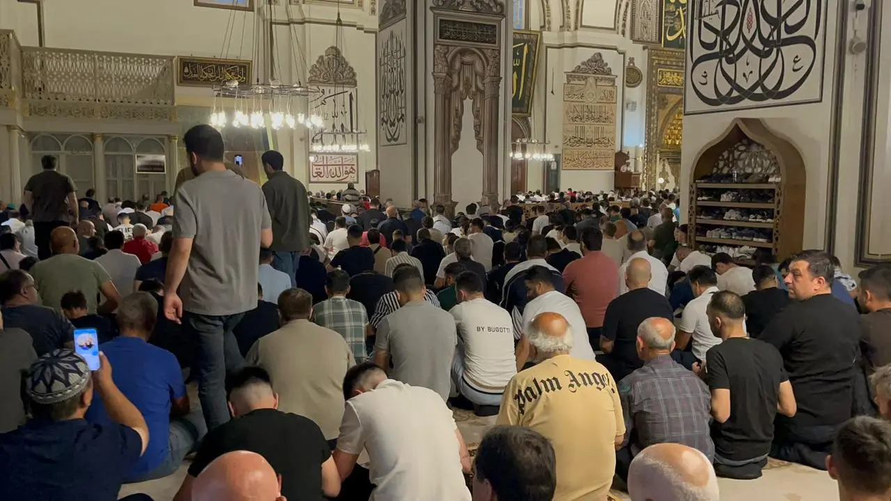 Tarihi Ulu Cami'de sabahın erken saatlerinde yoğunluk yaşandı. İçeride yer bulamayan vatandaşlar avluda saf tuttu.