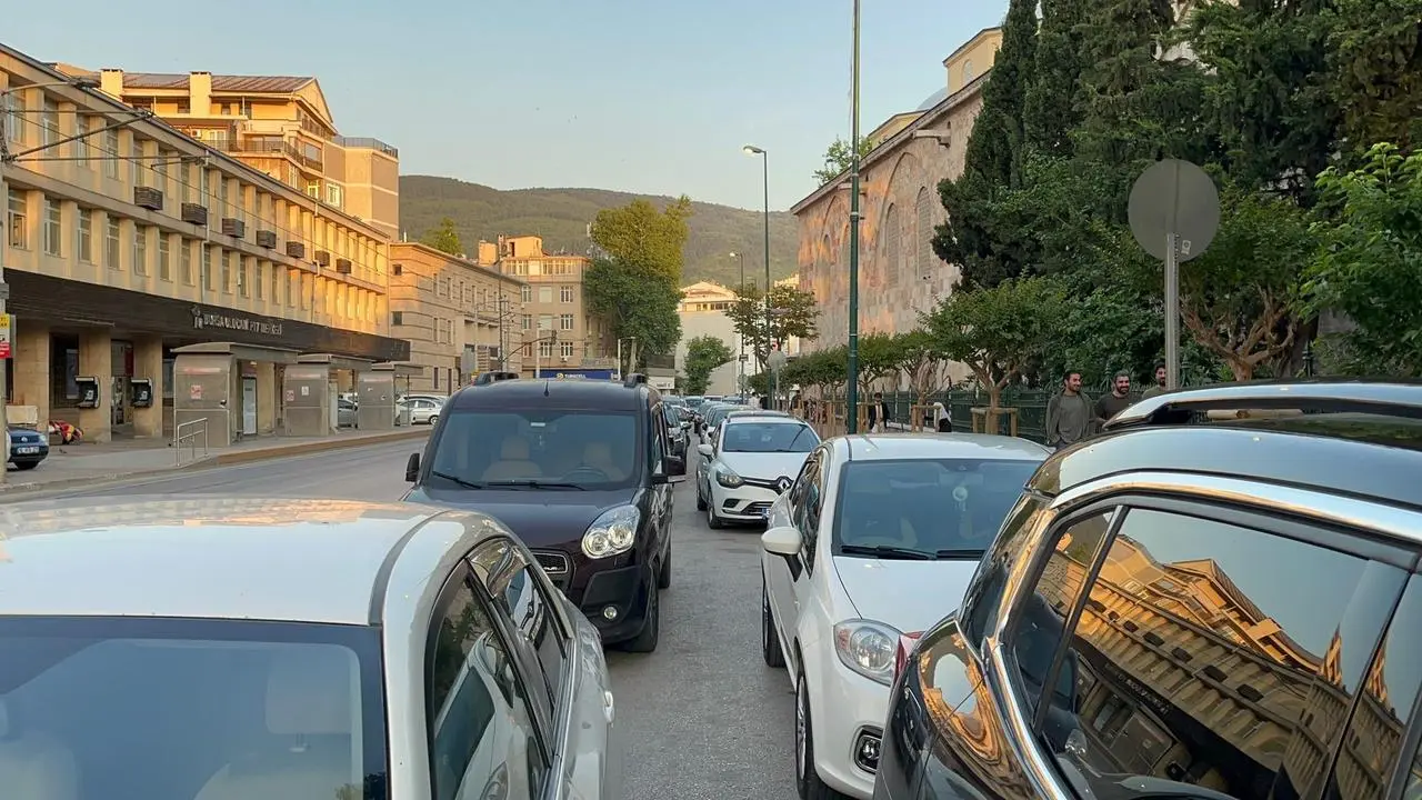 Atatürk Caddesi'nde araç yoğunluğu nedeniyle trafik iki şeride düşürüldü. Polis ekipleri cami çevresinde güvenlik önlemleri aldı.