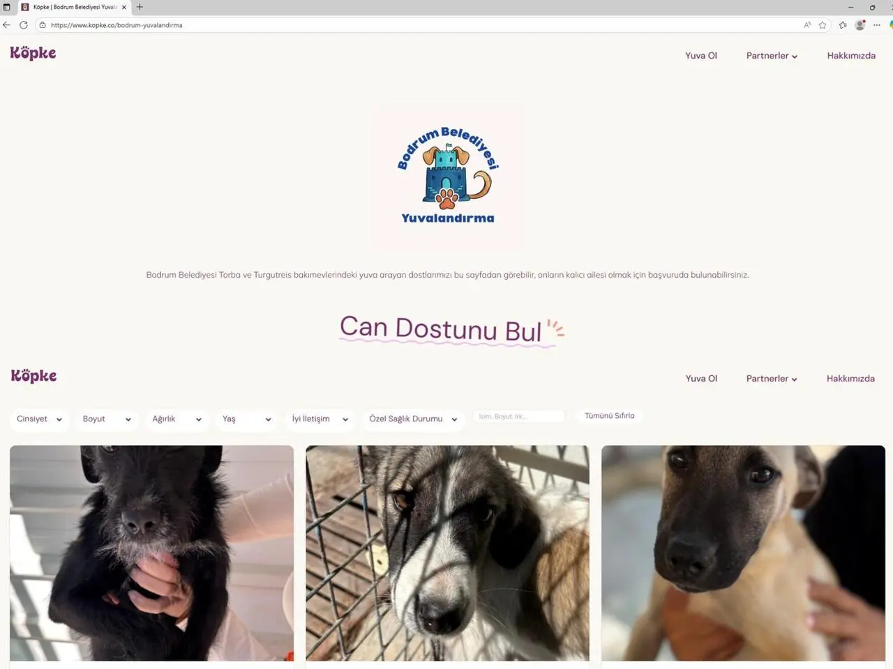 Platformda, cinsiyet, boyut ve yaş gibi filtrelerle uygun hayvanlar bulunabiliyor. Yuvalandırma başvuruları, yetkililer tarafından değerlendiriliyor.