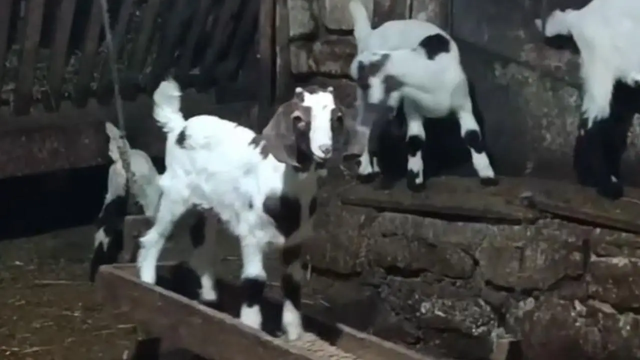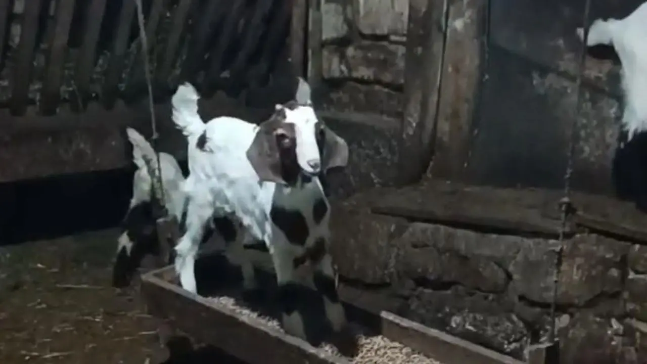 Bolu'nun Mudurnu ilçesinde bir oğlağın ahırda tavana asılı yemlikte sallanarak eğlenmesi sosyal medyada ilgi çekti.