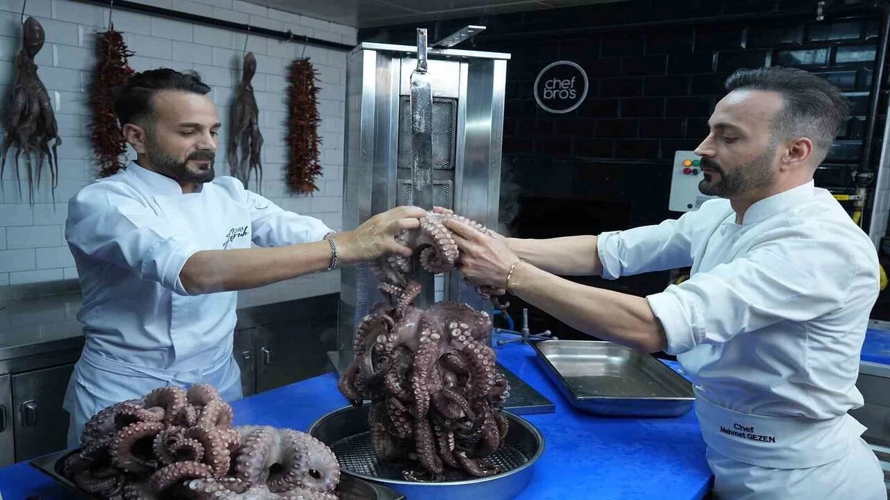 Faruk ve Mehmet Gezen kardeşler, Türk mutfağının klasik lezzetlerini deniz ürünleri ile buluşturarak farklı tatlar yaratmaya devam ediyor. Restoranlarında menüye ekledikleri ahtapot döner, sadece yerel halkı değil, tüm Türkiye’yi etkisi altına almayı başardı. Kardeşler, daha önce hazırladıkları levrek şiş, simit levrek ve orkinos döneri ile dikkat çekmişti.
