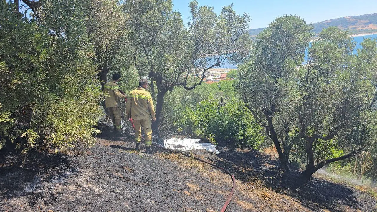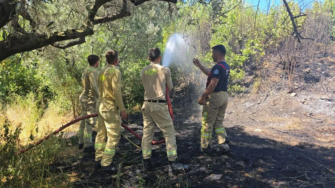 Bursa'nın Mudanya ilçesinde çıkan yangında 8 dönüm zeytinlik zarar görürken, buğday tarlası son anda kurtarıldı.