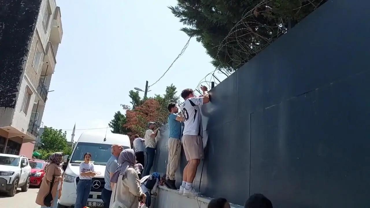 Okul kapıları kapanınca velilerden bazıları duvarlara tırmandı. Tel örgülerin arasından çocuklarını görmeye çalışanlar dikkat çekti.