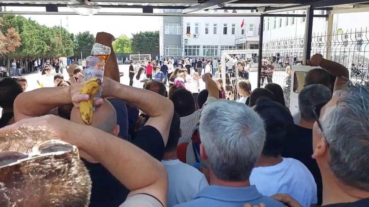 Saat 09.30'da başlayan LGS sınavında veliler okul kapısında toplandı. Kalabalık nedeniyle okul önünde hareketli dakikalar yaşandı.