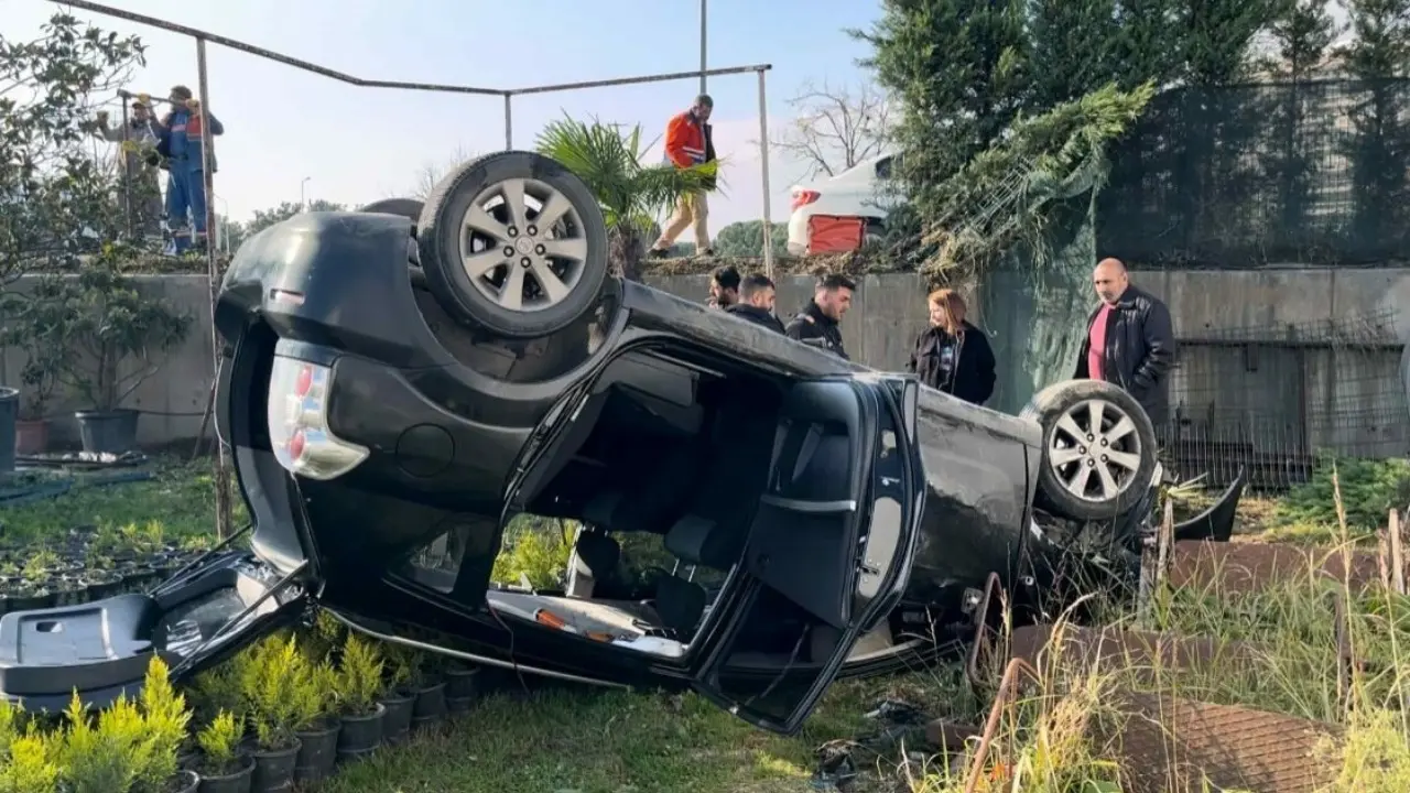 Bursa'nın Yunuseli Mahallesi'nde akşam saatlerinde yaşanan kazada, 2 arkadaşıyla birlikte seyir halindeki sürücü, viraja hızla girdi. Ancak, direksiyon hakimiyetini kaybeden sürücü aracını kontrol edemedi. Otomobil, yol kenarındaki ağaçları devirip, demir korkulukları aşarak çiçek bahçesine uçtu. Kazanın şiddetiyle otomobil takla attı ve araçtaki 2 kişi yaralandı.