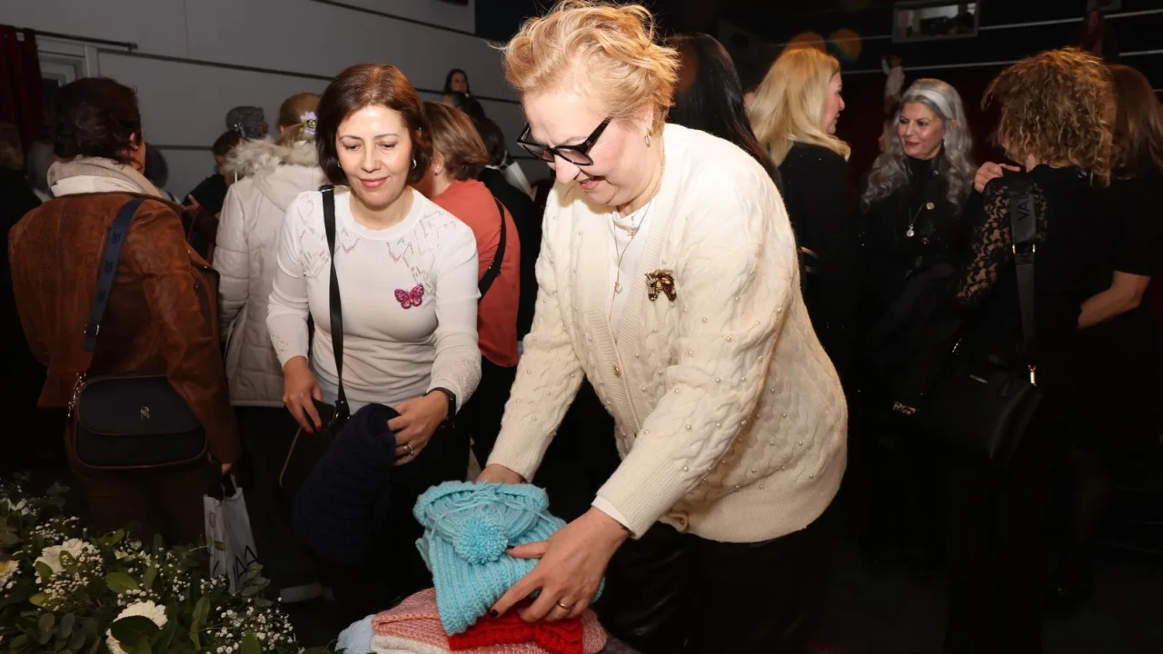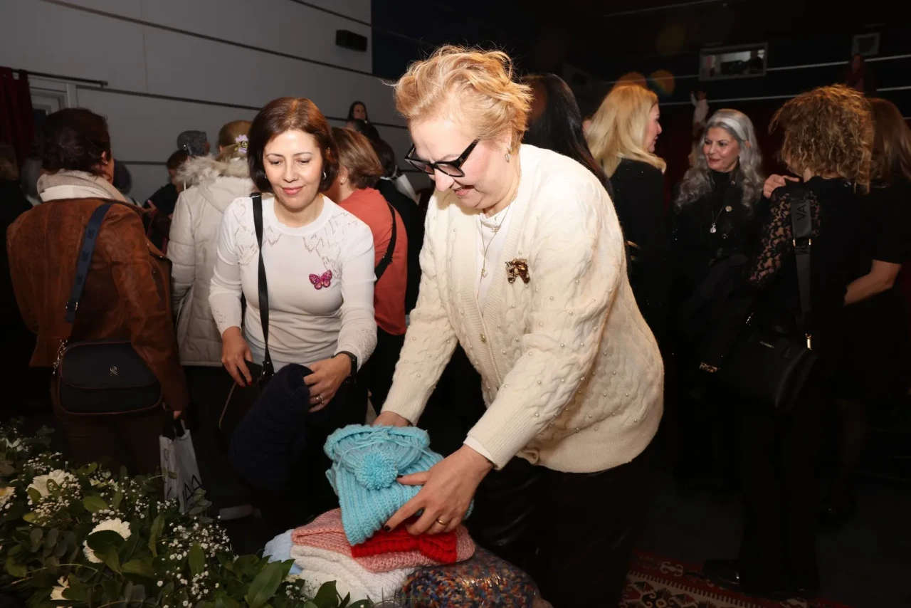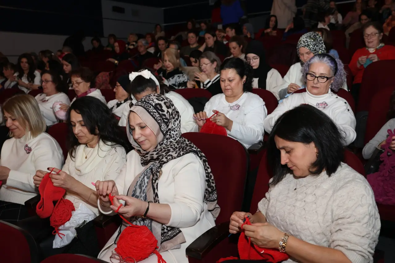 Bursa'da 200 kadın sinema salonunda film izlerken ihtiyaç sahibi çocuklar için örgü ördü.