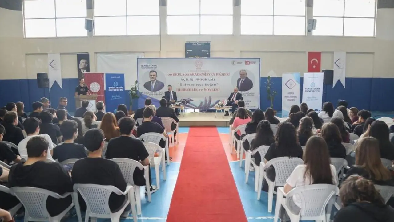 Bursa Teknik Üniversitesi (BTÜ) ve Bursa İl Milli Eğitim Müdürlüğü'nün ortaklaşa yürüttüğü "100 Okul 100 Akademisyen Projesi"nin ilk etkinliği Nilüfer Borsa İstanbul Fen Lisesi'nde gerçekleştirildi. BTÜ Rektörü Prof. Dr. Naci Çağlar ve İl Milli Eğitim Müdürü Dr. Ahmet Alireisoğlu, öğrencilerle bir araya gelerek üniversite kültürü ve geleceğe hazırlık konularında önemli bilgiler paylaştılar.