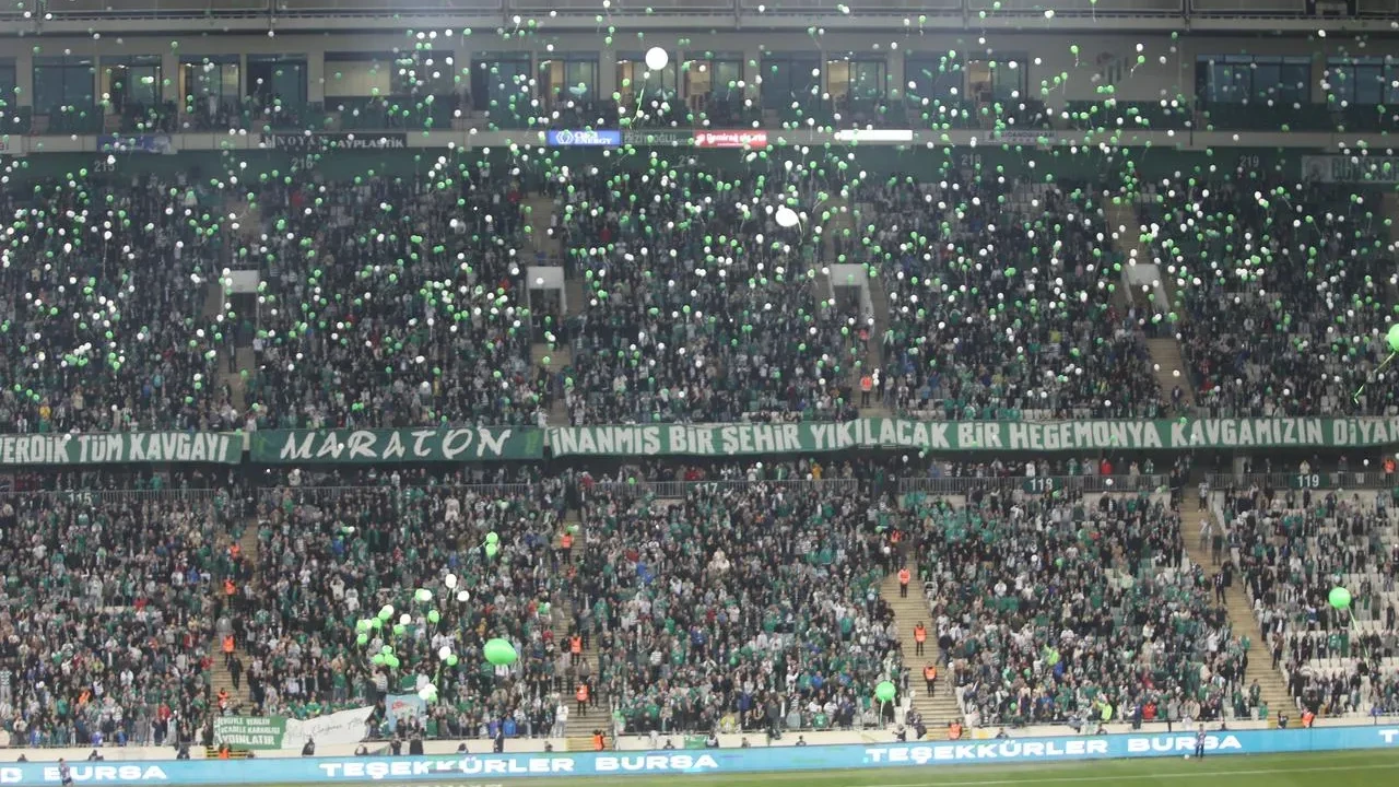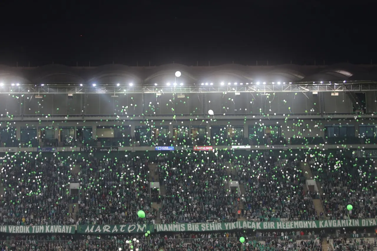 Yeşil-beyaz renkli 20 bin balon gökyüzüne bırakıldı. "Şampiyon Çağan" sloganlarıyla tribünler coşku dolu anlar yaşadı.