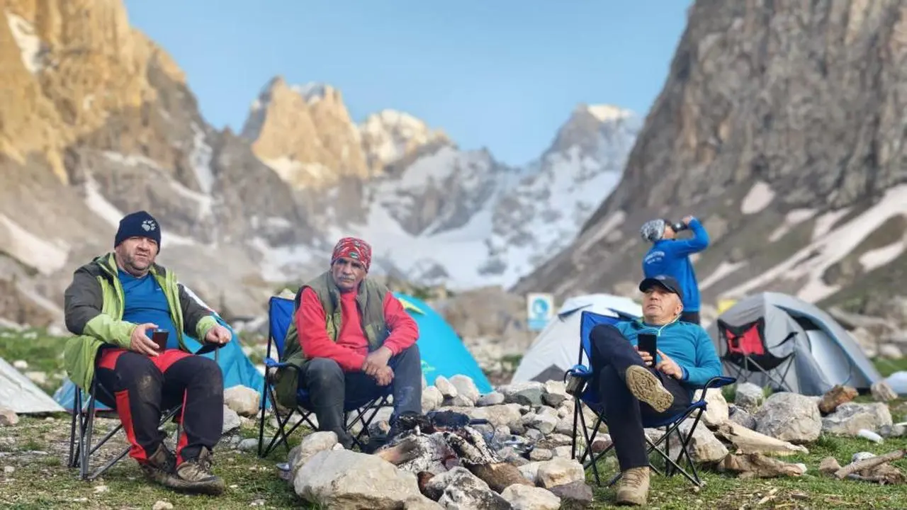 Sabahın ilk ışıklarıyla uyanan dağcılar, vadinin buzul ve çiçeklerle süslü eşsiz manzarasına bir kez daha hayran kaldılar. 20 bin yıllık buzulların ardında açan rengarenk çiçekler, doğanın mucizesini gözler önüne serdi. Bu muhteşem manzara, dağcıların ruhunu dinlendirdi ve onlara ilham verdi.