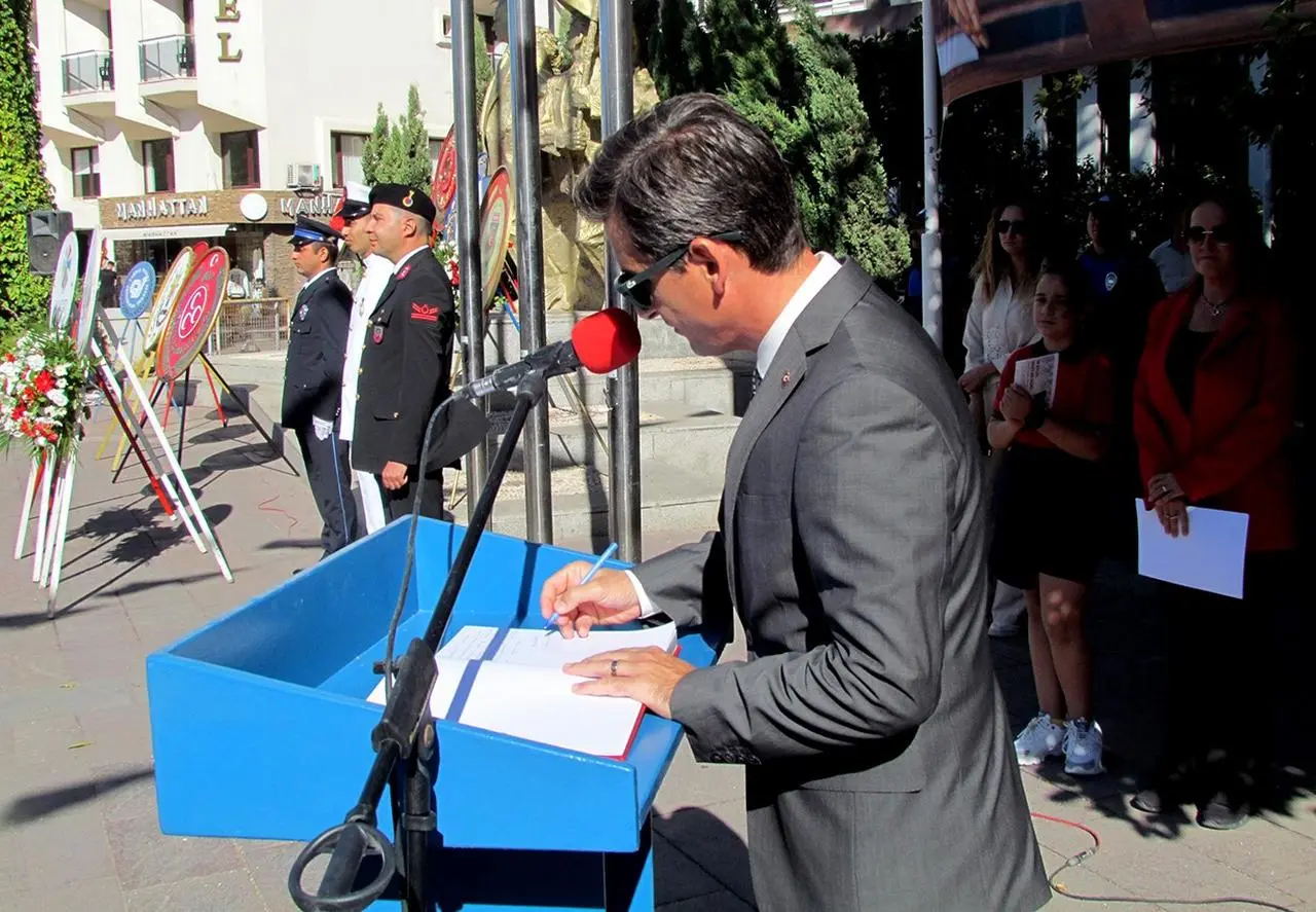 Atatürk Anıtı'na çelenk sunuldu ve İstiklal Marşı okundu. Kaymakam Mehmet Maraşlı, şeref defterine anlamlı bir mesaj yazdı.