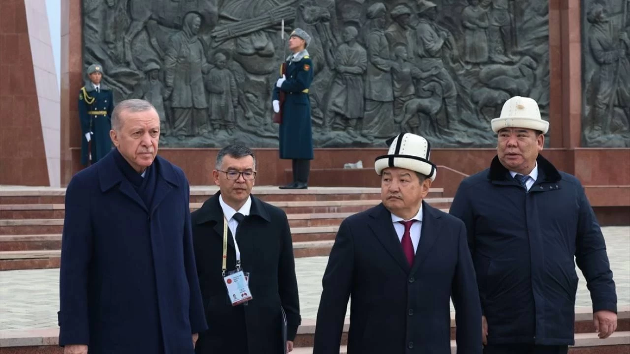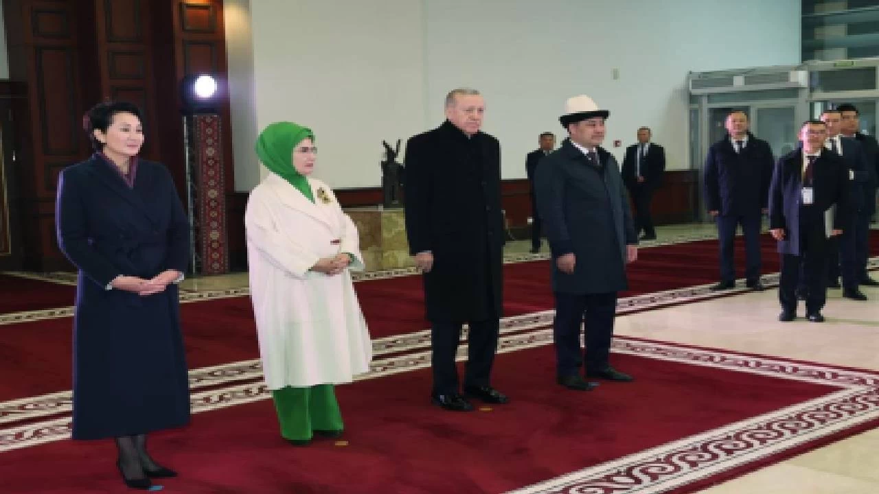 Cumhurbaşkanı Erdoğan Kırgızistan’da, Türk Devletleri Teşkilatı Zirvesi’ne katılmak üzere bulunduğu ziyaret kapsamında Kırgızistan Cumhurbaşkanı Sadır Caparov tarafından resmi törenle karşılandı. Erdoğan, “ata yurdu” olarak nitelendirdiği Kırgızistan’da, ikili işbirliği ve Türk dünyasıyla ilişkileri güçlendirme adımlarını değerlendirdi.