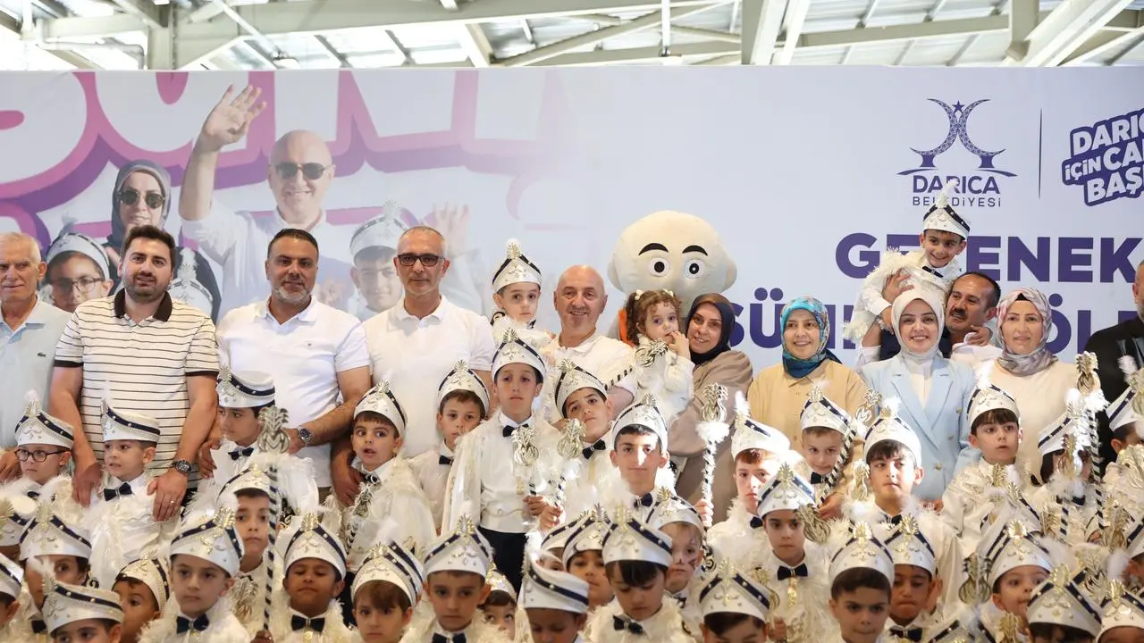 Kocaeli'nin Darıca ilçesinde düzenlenen geleneksel sünnet şöleninde 350 çocuk erkekliğe ilk adımını attı.