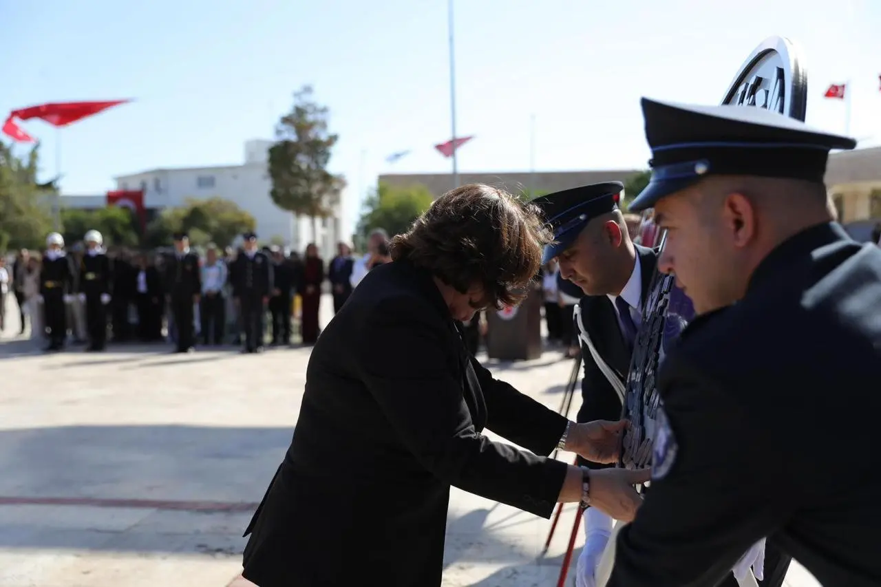 Protokol üyeleri ve halkın katılımıyla Cumhuriyet Kent Meydanı'nda anlamlı bir program düzenlendi. Çelenk sunma, saygı duruşu ve İstiklal Marşı ile tören başladı.
