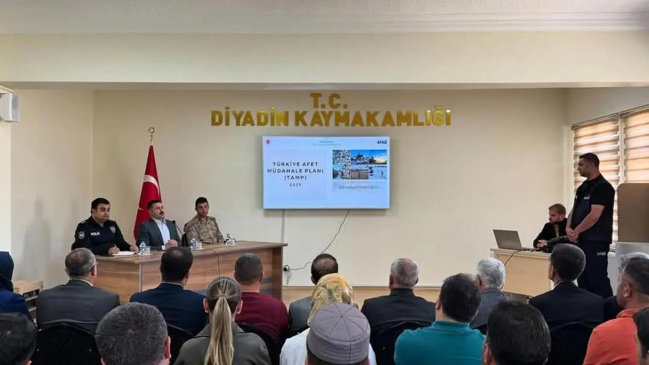 Diyadin Kaymakamlığı'nın ev sahipliğinde düzenlenen toplantı, AFAD İl Müdürlüğü koordinasyonunda gerçekleşti. Toplantıya, ilçe genelindeki çeşitli kurum ve kuruluşların temsilcileri katılım sağladı. Katılımcılar, olası afet senaryoları üzerinden değerlendirmeler yaparak, müdahale süreçlerinin daha etkin hale getirilmesi için fikir alışverişinde bulundu. Toplantıda, özellikle deprem, sel ve heyelan gibi doğal afetlere karşı alınacak önlemler üzerinde duruldu.