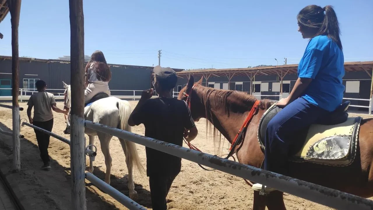 SYDV'den destek alan öğrenciler at binmenin keyfini çıkardı. Eğitmenler eşliğinde güvenli bir şekilde etkinlik tamamlandı.