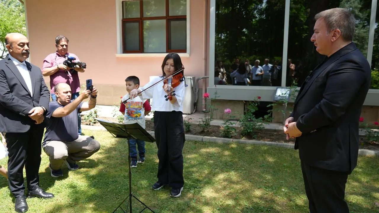 Bayramlaşma programı renkli görüntülere sahne oldu. Program sonunda bir kız çocuğunun sunduğu keman resitali beğeni topladı.