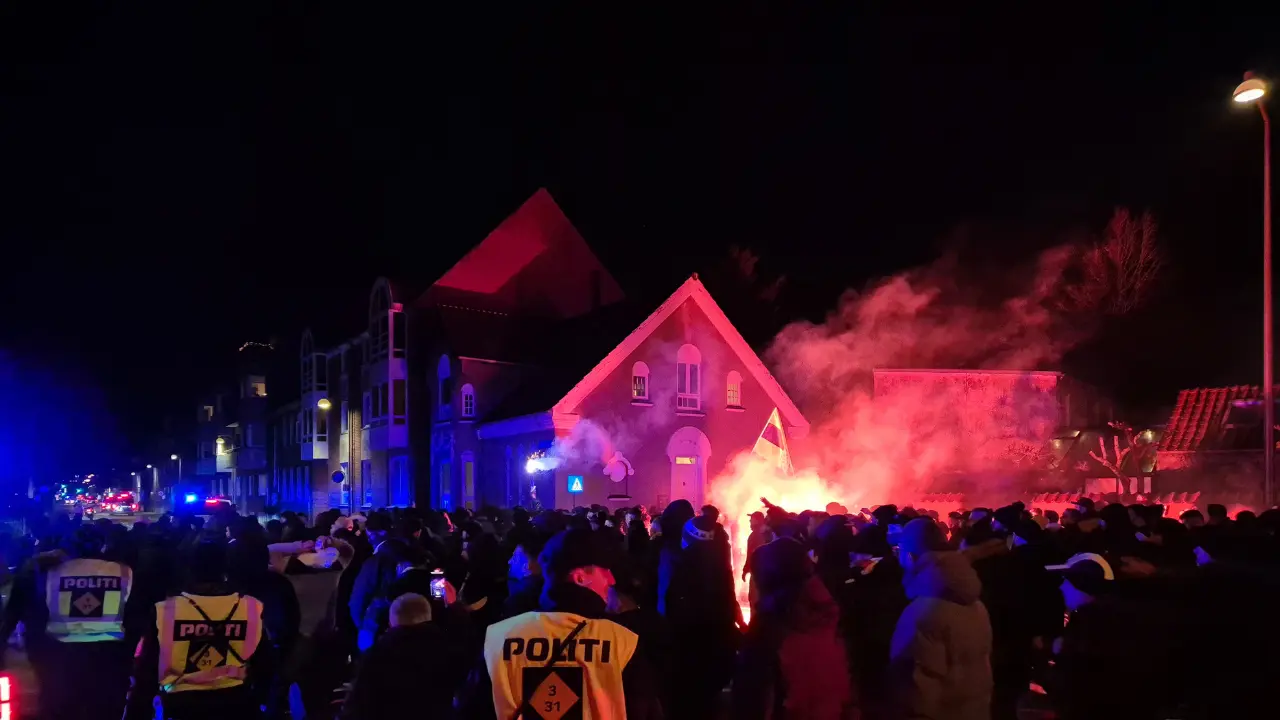 Taraftarlar, maçın oynanacağı MCH Arena’ya doğru büyük bir kortej başlatarak yürümeye başladı. Sarı-lacivertli bayraklar ve fenerlerle donanmış taraftarlar, Herning sokaklarını bir futbol kutlamasına çevirdi. Her yaştan Fenerbahçe taraftarı, bu görkemli organizasyona katılarak takımlarına olan bağlılıklarını bir kez daha gösterdi.