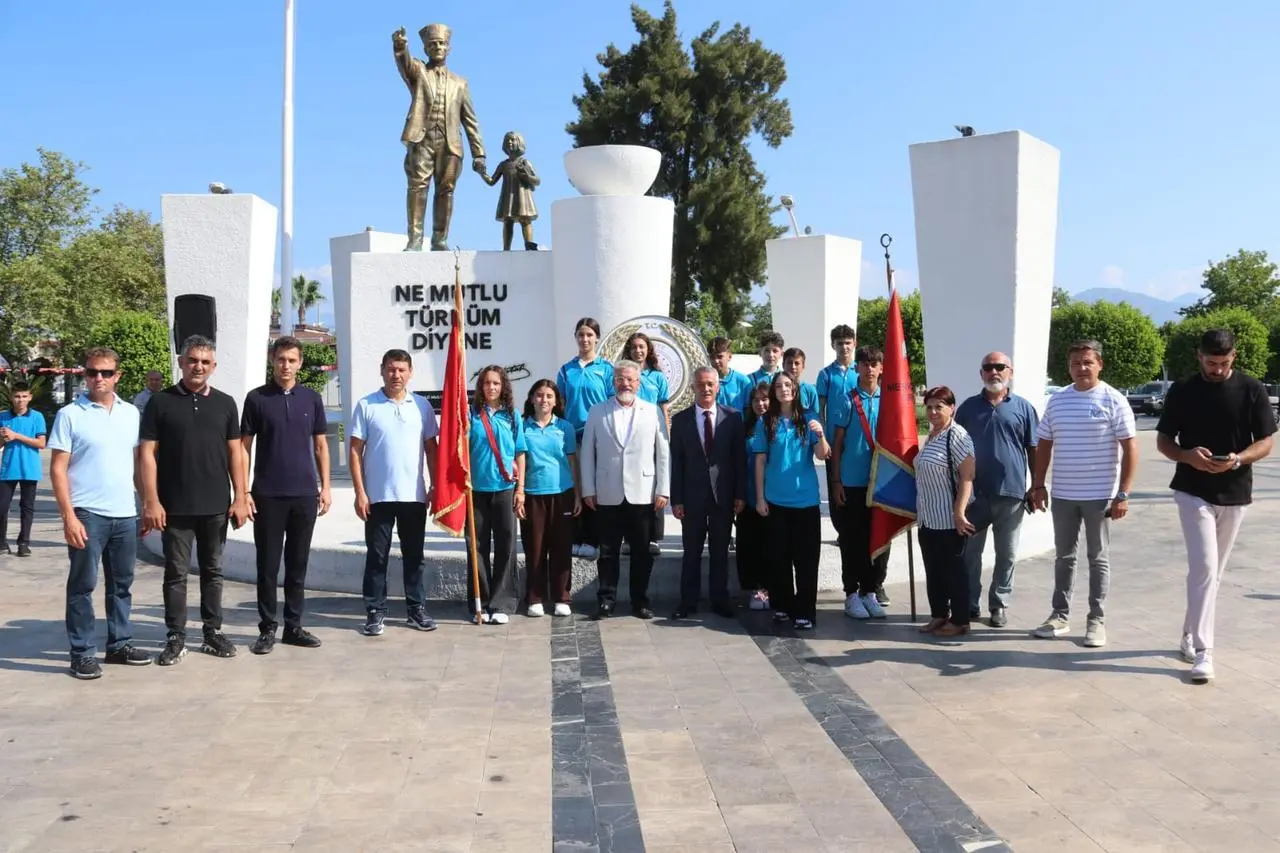 Program, İlçe Milli Eğitim Müdürlüğü çelenginin Atatürk Anıtı'na sunulmasıyla başladı. Ardından katılımcılar saygı duruşunda bulunarak İstiklal Marşı'nı okudu.