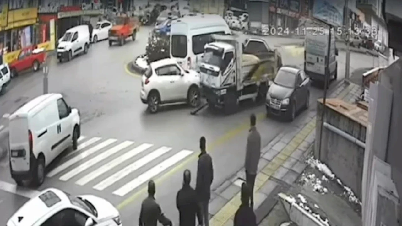 Freni boşalan kamyonet, önce trafik ışıklarında bekleyen araçlara çarptı. Ardından kontrolsüz şekilde park halindeki araçlara çarparak durabildi. Kaza, araçların büyük bir hasar almasına neden oldu. O esnada, bir otomobilin sürücüsünün kamyonet yaklaşırken hızla geri gitmesi, görülür şekilde bir kaza anından kurtulmasına sebep oldu.