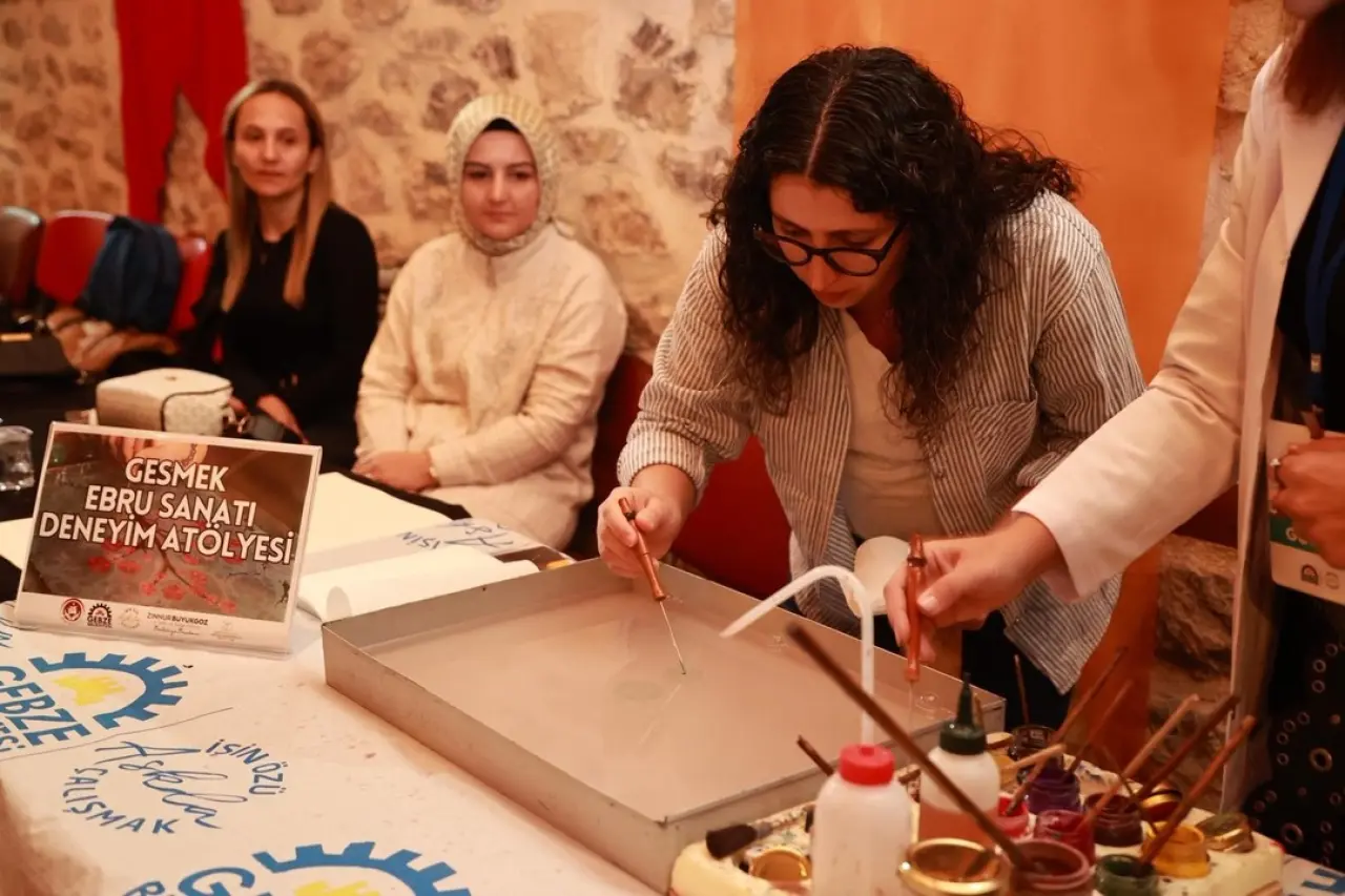 Gebze Belediyesi Kadın ve Aile Hizmetleri Müdürlüğüne bağlı GESMEK kursiyerleri tarihi su dolabında ebru etkinliğinde buluştu.