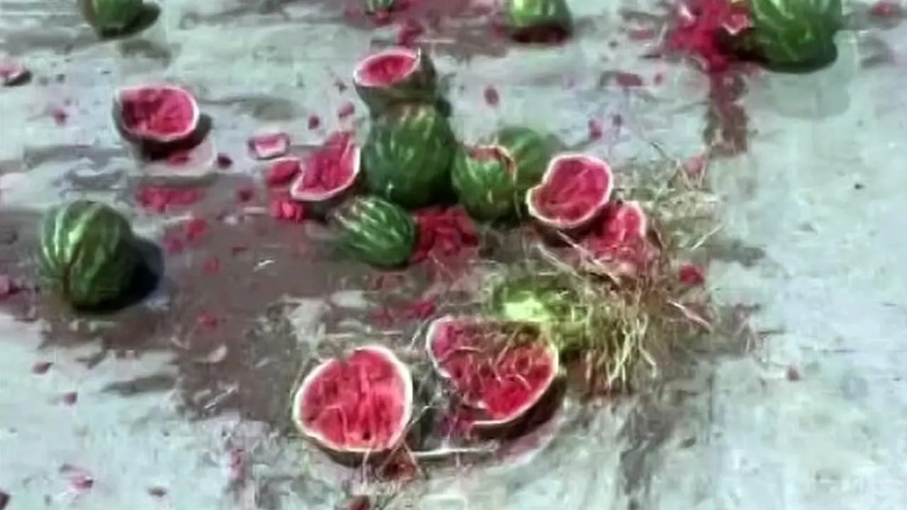 Çevredeki vatandaşlar, çiftçinin bu davranışı karşısında şaşkınlık yaşadı. Karpuzların tek tek parçalanması dikkat çekti.