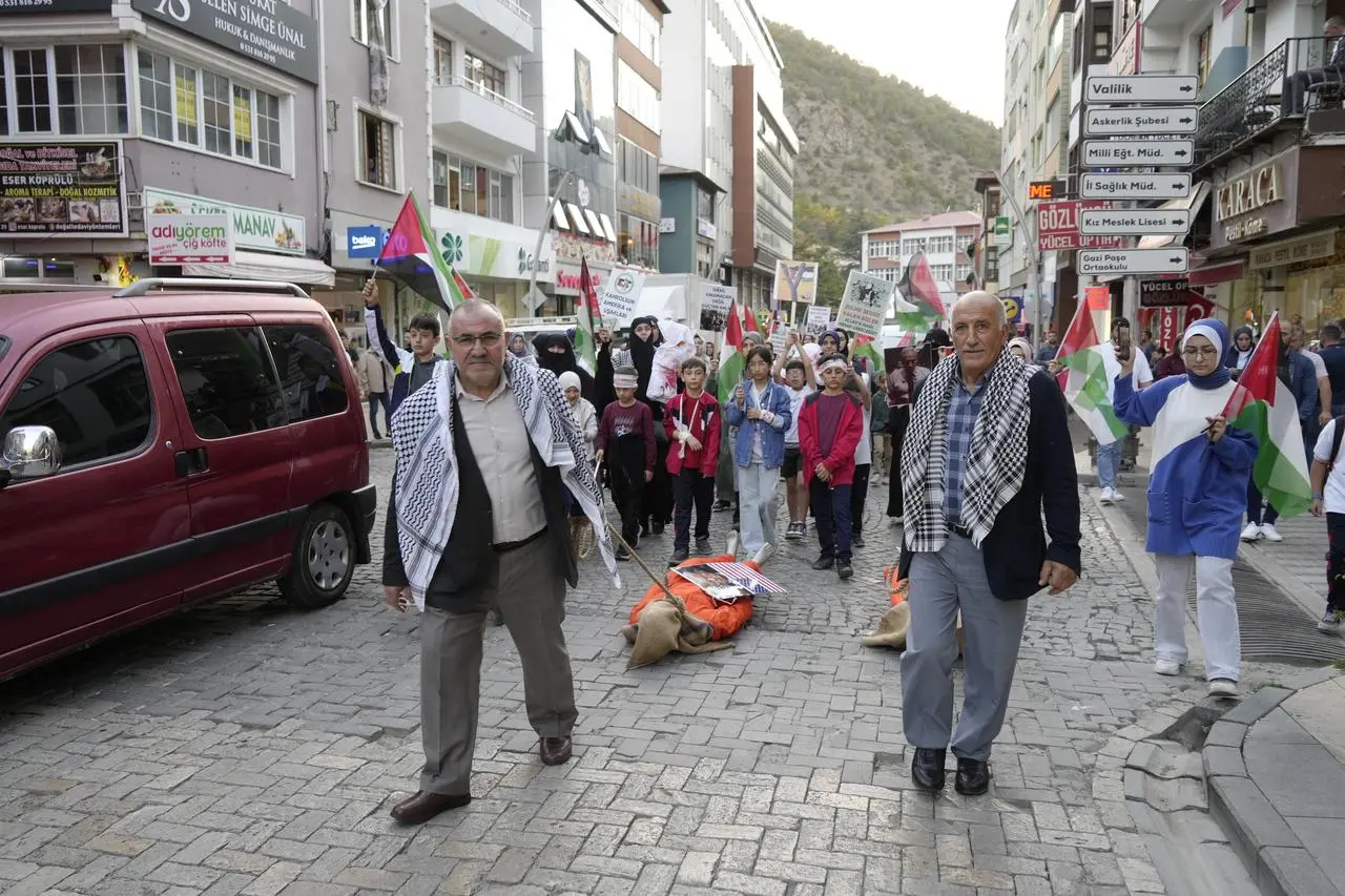 Gümüşhane'de 7 Ekim Aksa Tufanı Operasyonu'nun yıl dönümünde Gazze'ye destek için yürüyüş düzenlendi.