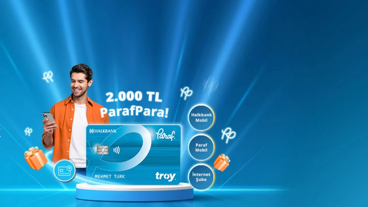 Halkbank’ın Mobil uygulama, Paraf Mobil uygulama, İnternet Şube, Paraf ve Parafly web sitelerinden başvurulan Troy logolu Paraf kredi kartına sahip olan bireyler, Aralık ayında yaptıkları alışverişlerle büyük ödüller kazanabilir. 1.000 TL ve üzeri alışverişlerde sırasıyla 500 TL, 500 TL ve 1.000 TL olmak üzere toplamda 2.000 TL ParafPara kazanılacaktır.