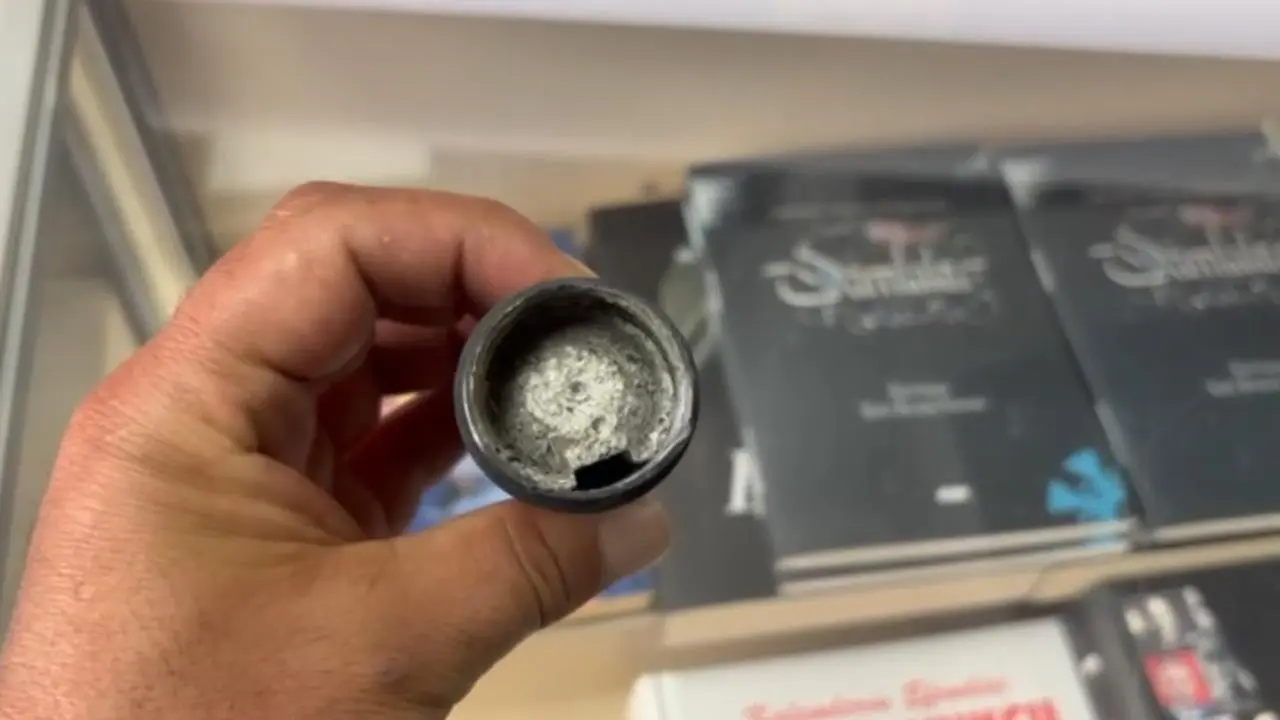 Ürünü detaylı inceleyen vatandaş, mikrofonun içine beton döküldüğünü tespit etti. Durumu cep telefonu kamerasıyla kayıt altına aldı.
