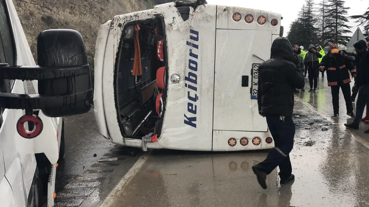 Kaza, saat 15.00 sıralarında Isparta-Afyonkarahisar Karayolu Göltaş mevkiinde meydana geldi. Isparta'dan Keçiborlu yönüne seyir halinde olan 32 K 0342 plakalı Keçiborlu Turizm'e ait yolcu midibüsü, yağmur nedeniyle kayganlaşan yolda sürücüsünün kontrolünden çıktı. Refüjdeki ağaçları deviren araç, karşı şeride geçerek yan yattı.