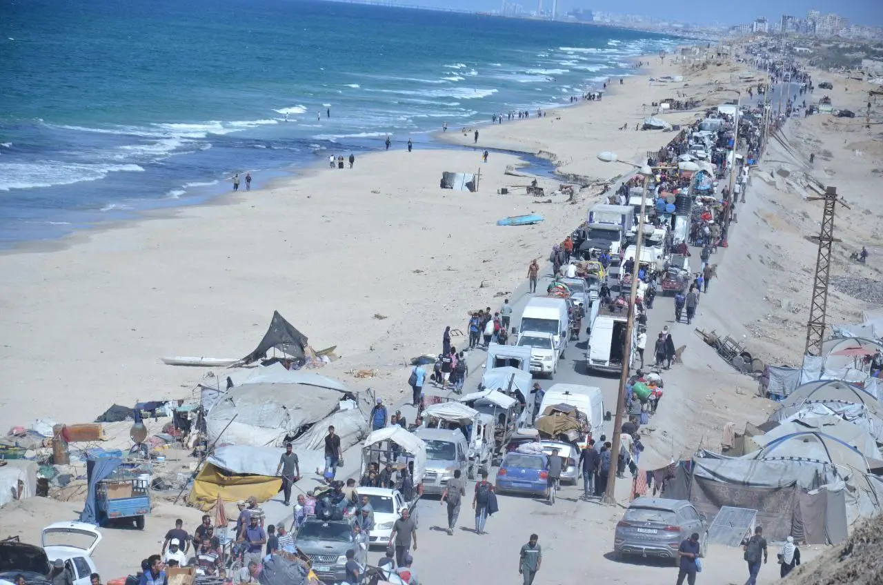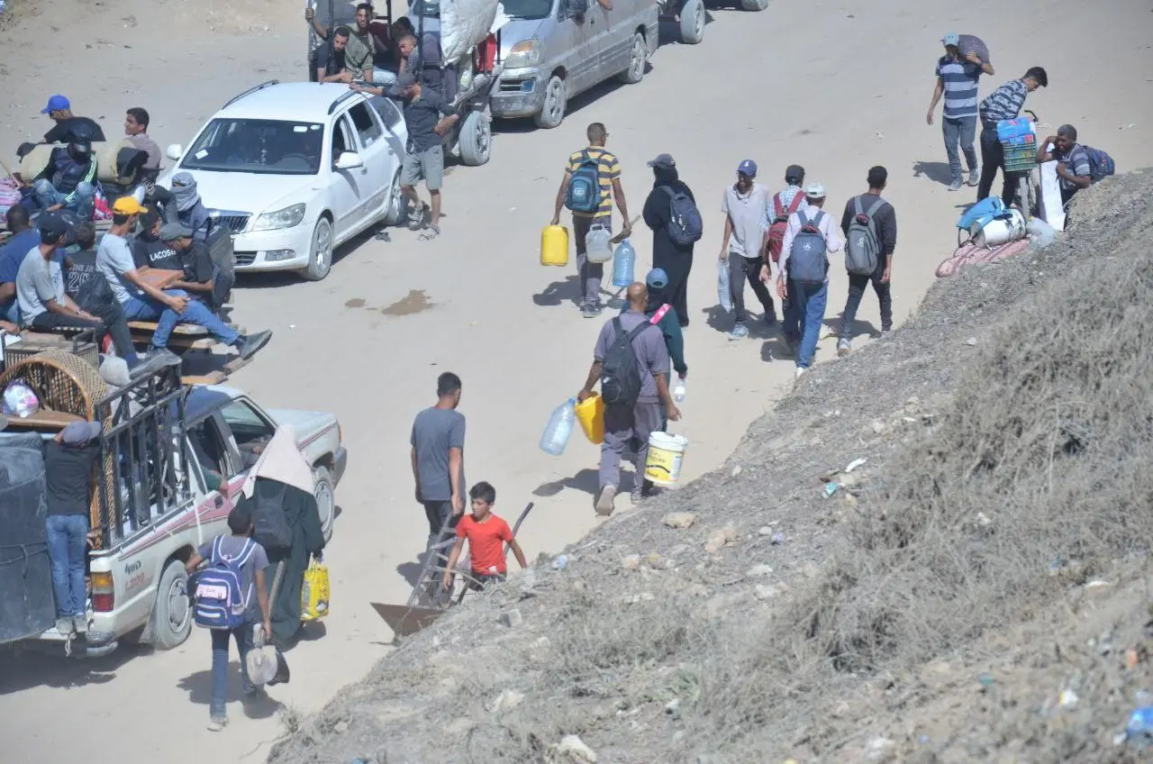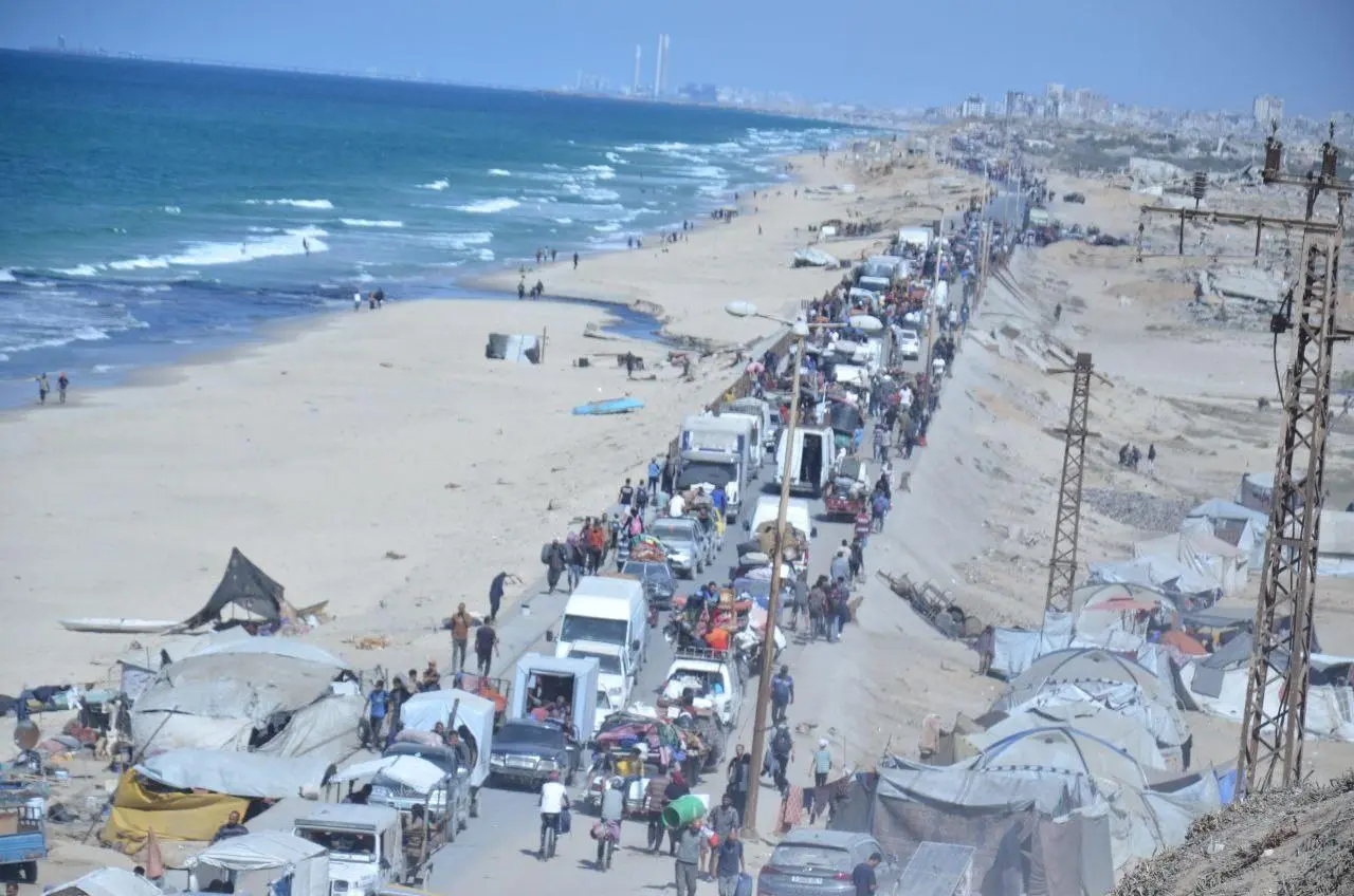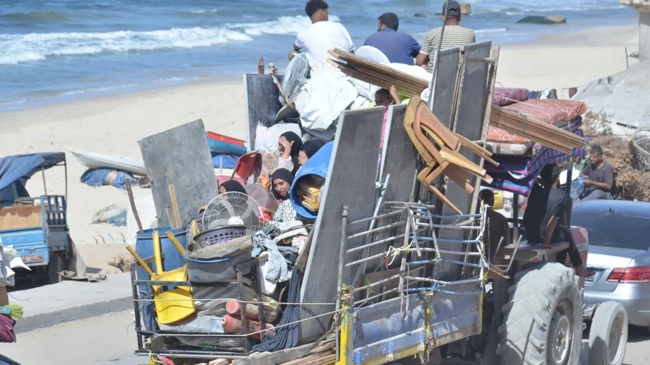 Raşid Caddesi'nde yüzlerce kamyon ve kalabalık araç kuyruğu oluştu. Filistinliler, eşyalarını taşırken kameralara yansıdı.