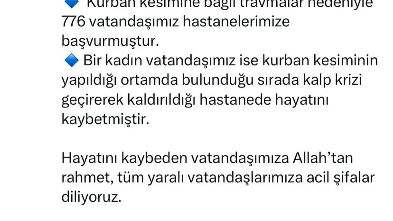 Kurban kesimi sırasında yaşanan kazalarda 776 kişi yaralandı. Yaralanmaların büyük çoğunluğu kesici alet kullanımından kaynaklandı.