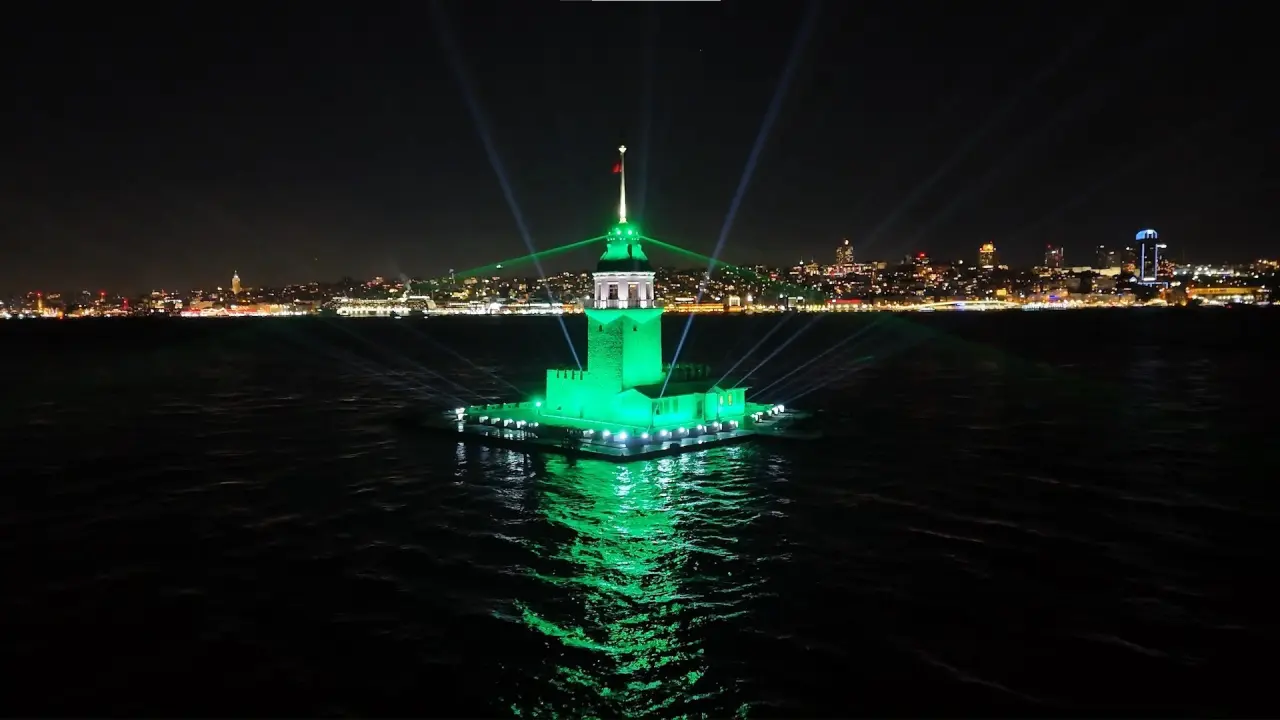 Kule, farklı renk ve desenlerle aydınlatıldı. Boğaz manzarası, ışıklarla bütünleşerek eşsiz bir atmosfer yarattı.