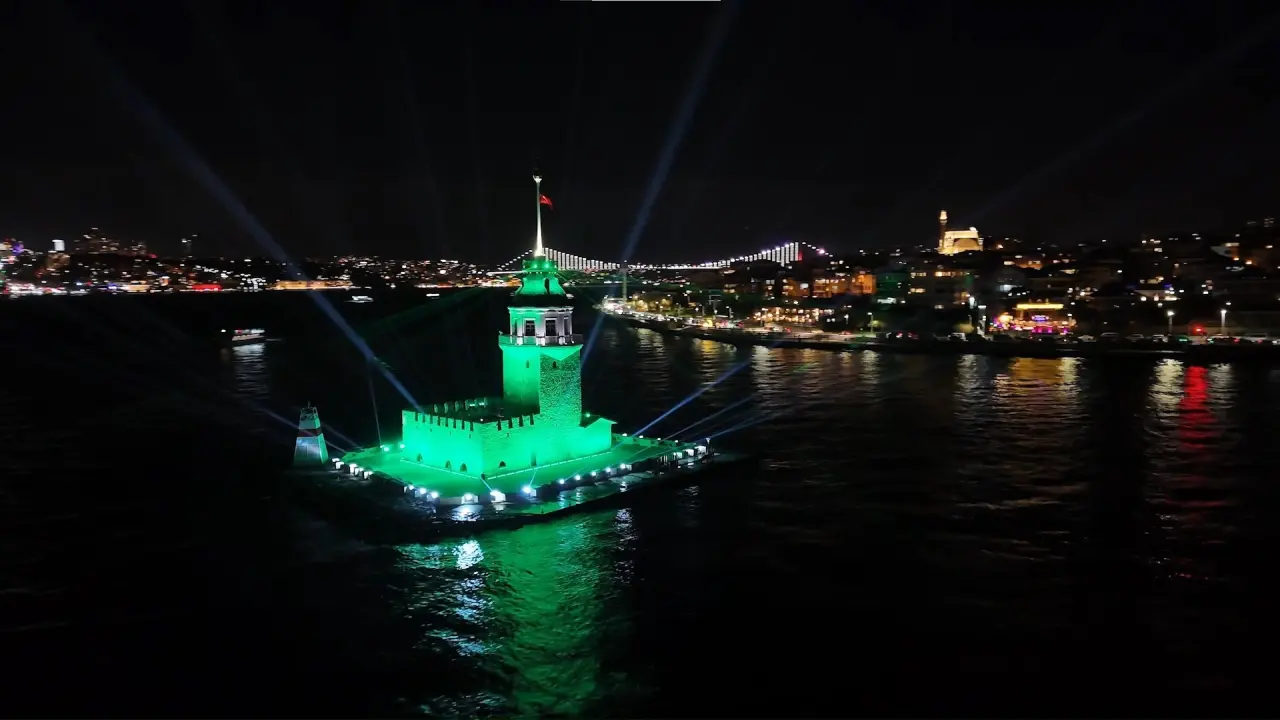 Dron görüntüleri, etkileyici ışık oyunlarını gözler önüne serdi. Kız Kulesi ve Boğaz silueti, geceyi unutulmaz kıldı.