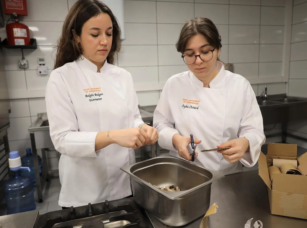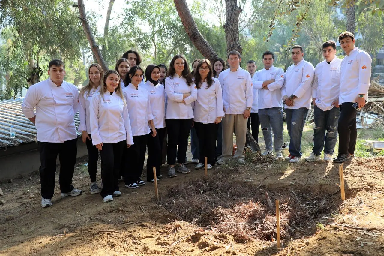 Gastronomi öğrencileri, sebze kabukları ve organik atıkları toplayarak toprakla buluşturdu. 2-3 aylık olgunlaşma sürecinin ardından elde edilen gübre, mikro filiz yetiştirmede kullanılacak.