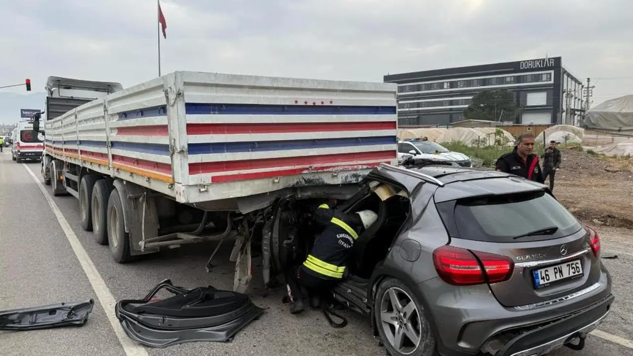 Kaza, Kahramanmaraş-Adana karayolunda, Mercedes marka 46 PN 757 plakalı otomobilin sürücüsünün direksiyon hakimiyetini kaybetmesiyle meydana geldi. Kontrolden çıkan otomobil, aynı yönde ilerleyen tırın altına girdi. Kazanın şiddetiyle otomobil kullanılamaz hale gelirken, çevredeki vatandaşlar durumu derhal yetkililere bildirdi.