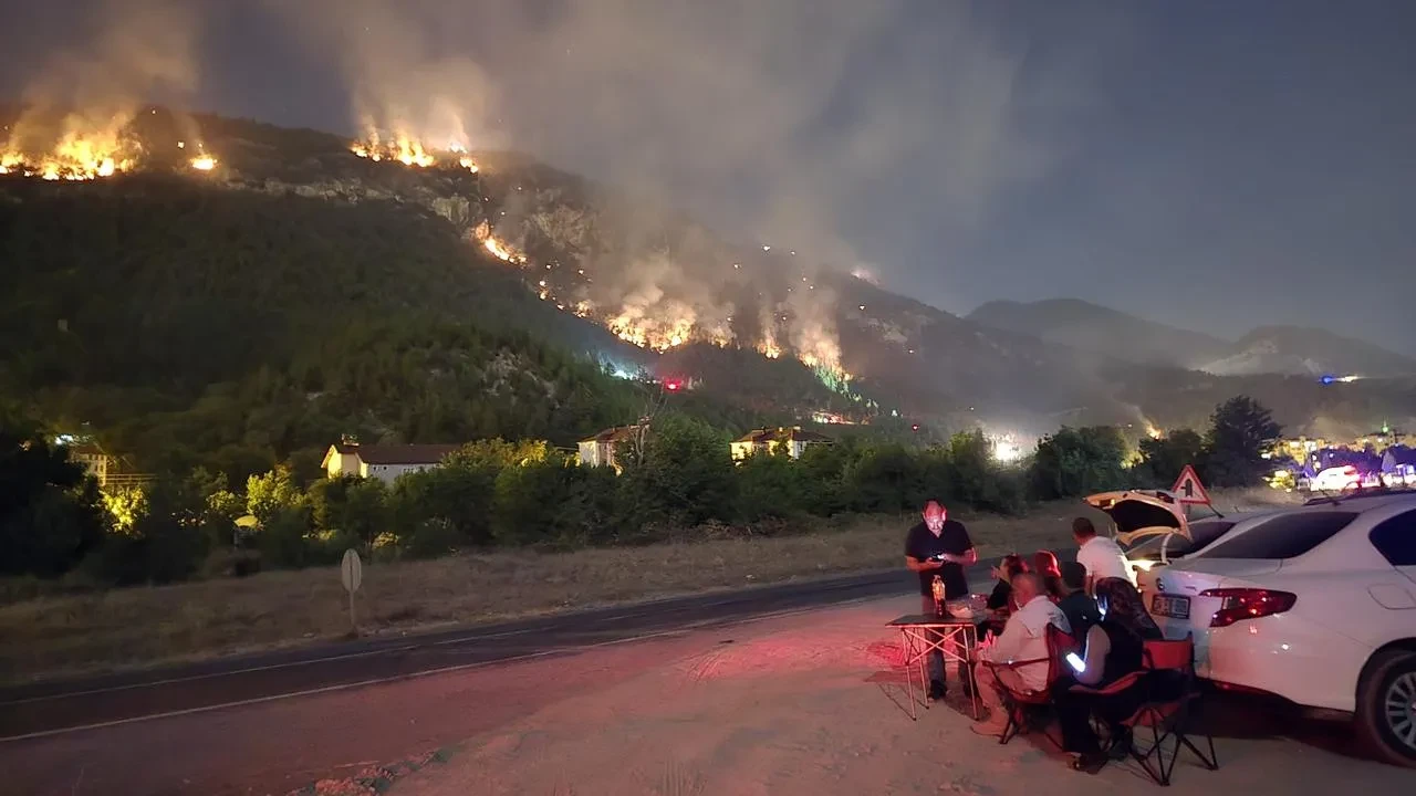 Karabük'te çıkan orman yangınını kamp sandalyelerinde oturarak izleyen vatandaşlar şaşkınlık yarattı. Yangın, rüzgarın etkisiyle hızla yayılarak yerleşim yerlerine kadar ulaştı.
