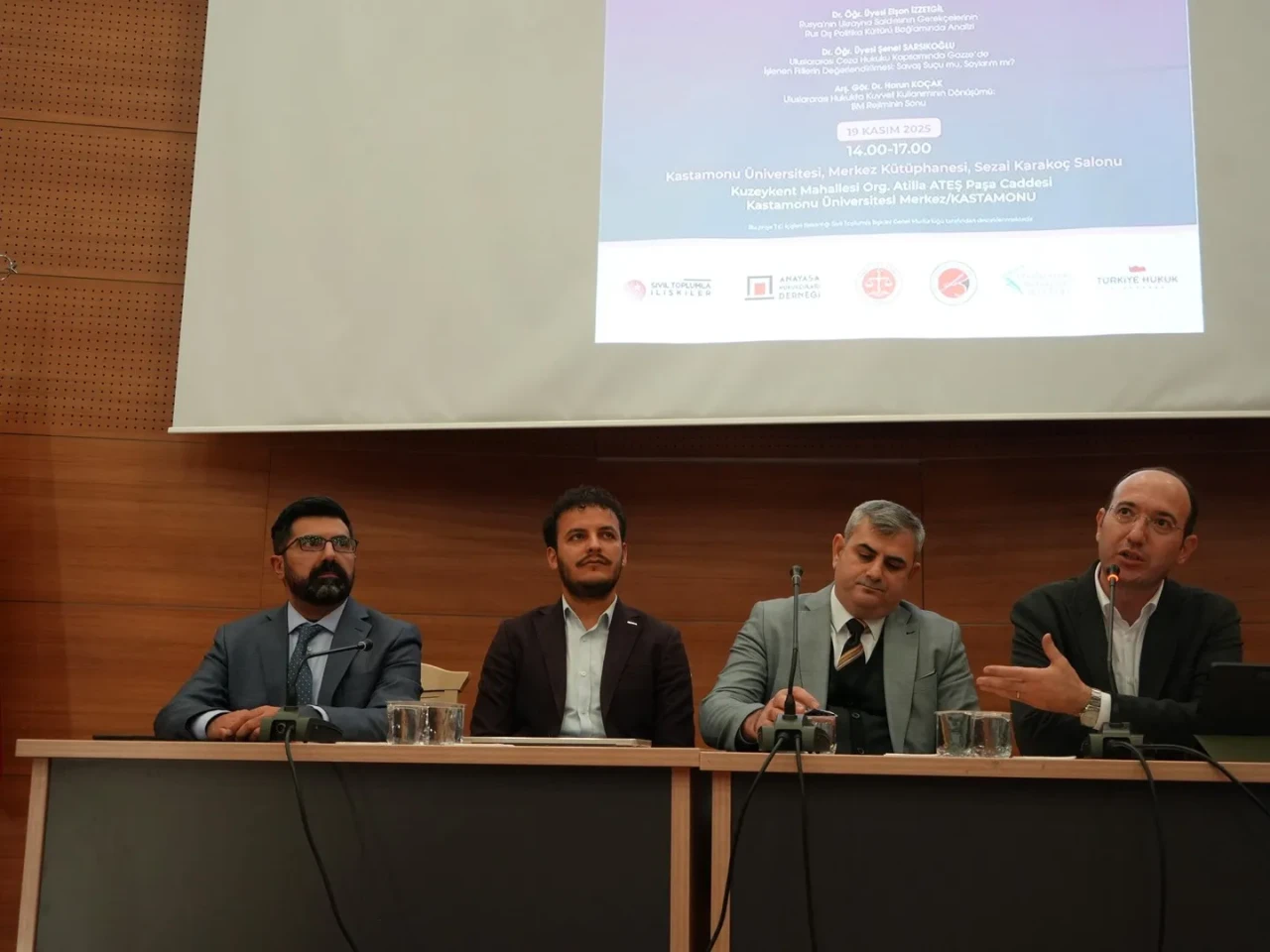 Kastamonu Üniversitesi'nde "Uluslararası Hukuk Bağlamında Savaş ve Çatışma" konferansı gerçekleştirildi. Rektör Prof. Dr. Ahmet Hamdi Topal, savaşların kurallara bağlanması gerektiğini vurguladı.
