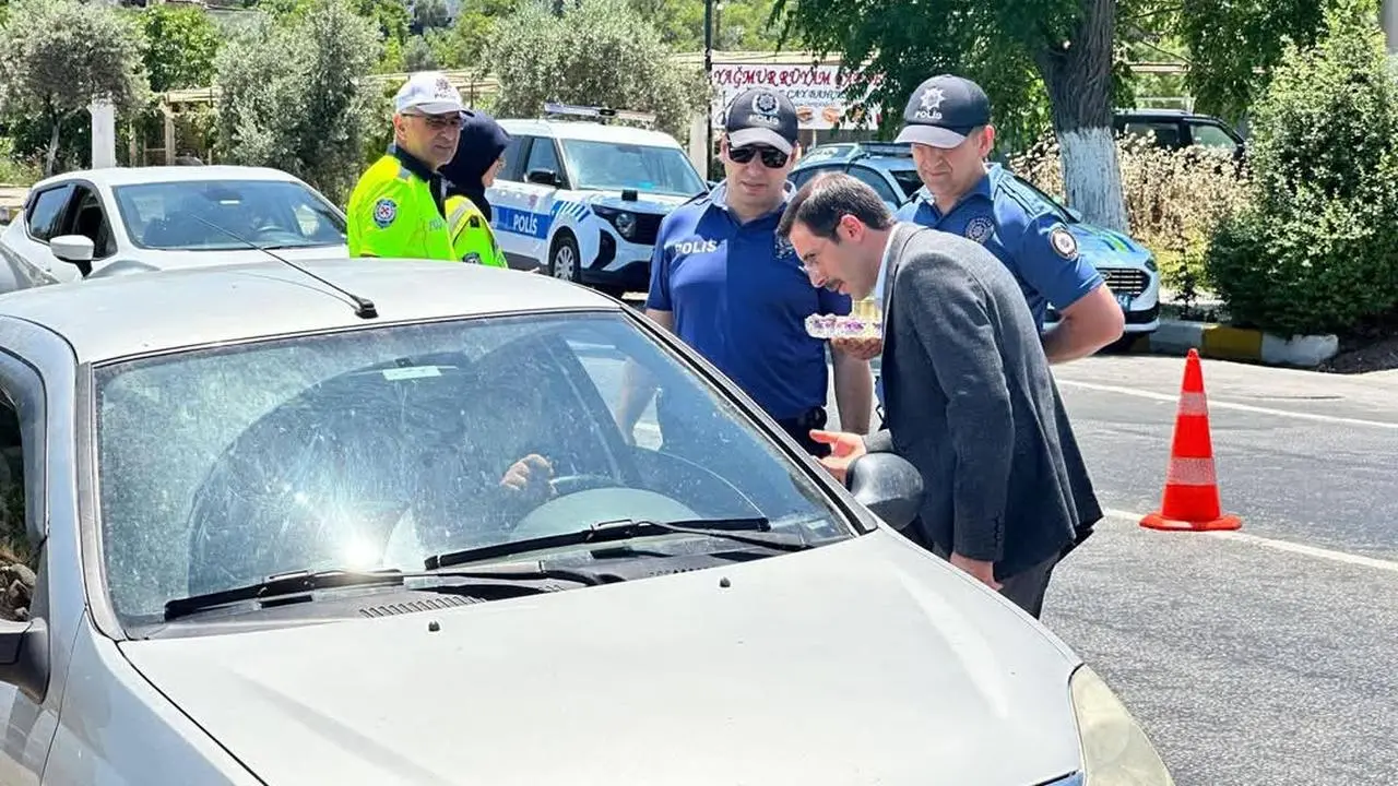 Kaymakam Polat, kontrol noktalarında sürücüler ve aileleriyle bayramlaştı. Trafik kuralları konusunda önemli hatırlatmalarda bulunuldu.