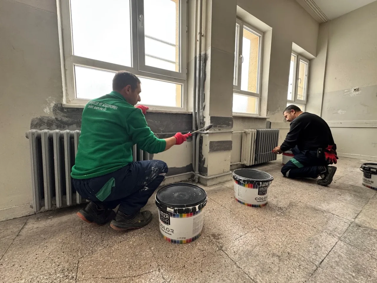 Belediye ekipleri, atölyeler ve teknik bakım onarım şubesi tarafından yürütülen çalışmalarla okulun görünümüne modern bir dokunuş yapıldı. Eğitim yuvalarının ihtiyaçları doğrultusunda tamirat ve tadilat çalışmalarına devam ediliyor.
