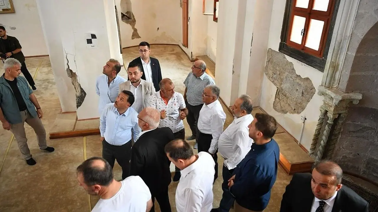 Büyükkılıç ve heyeti, Talas’taki Yaman Dede Camii’nde incelemelerde bulundu. Tarihi yapının korunmasına yönelik çalışmalar değerlendirildi.