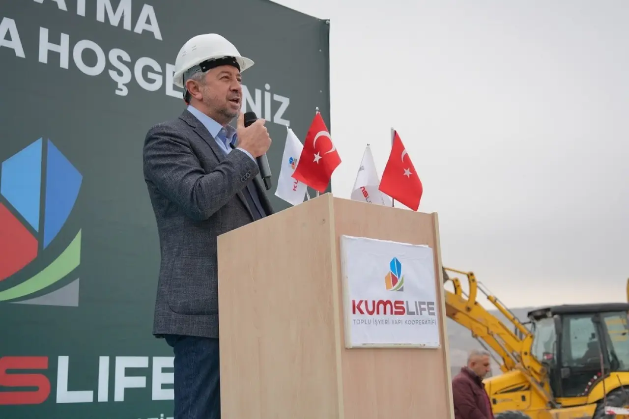 KumsLife Kooperatifi'nin zemin iyileştirme çalışmaları tamamlandı, temel atma töreni dualar eşliğinde yapıldı. Ercan Sarıkaya, projenin en iyi şekilde tamamlanacağını ifade etti.